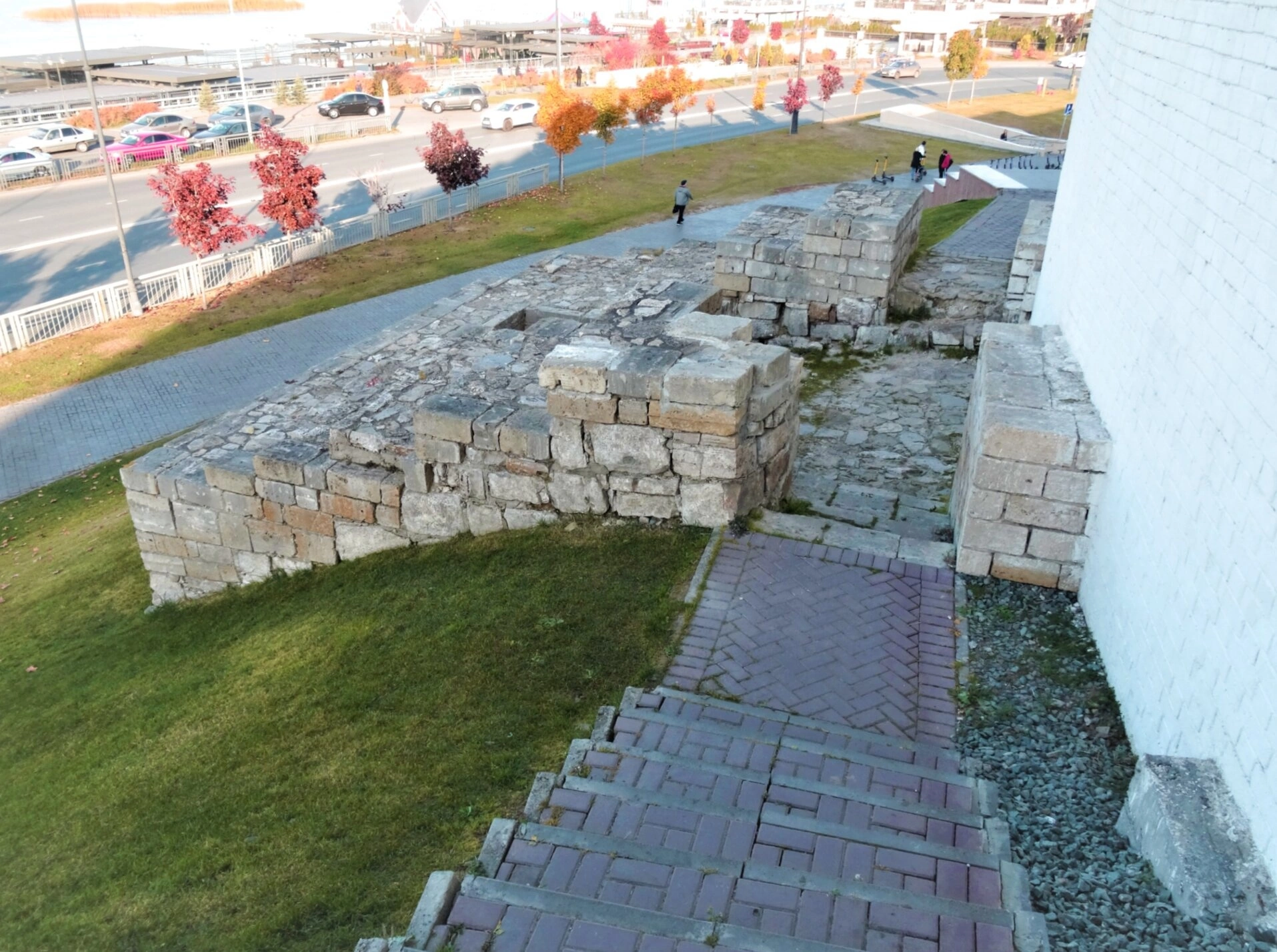 На представленной фотографии запечатлены благоговейные остатки древнего храма в честь святителя Николая Чудотворца, расположенного на Красной горке в остров-граде Свияжске. Святыня сия была воздвигнута в XVI столетии и ныне предстаёт перед нами в виде сохранившихся фундаментов и фрагментов стен, сложенных из крупных каменных блоков.
