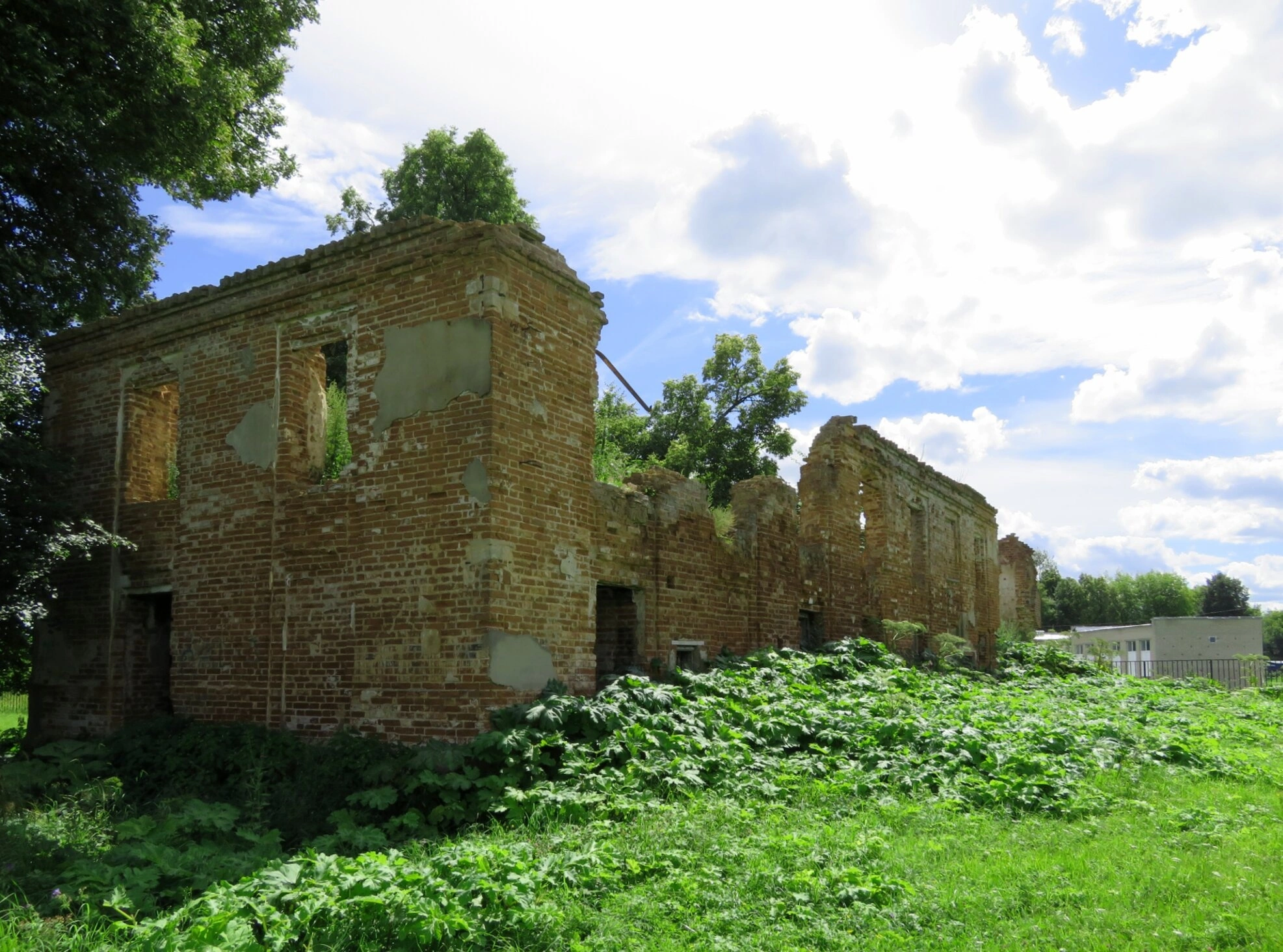 Стены храма находятся в частично обрушенном состоянии, лишены кровли и оконных заполнений. На кирпичной кладке явственно видны следы многолетнего воздействия стихий и человеческого забвения. Особую скорбность образу придают густые заросли борщевика, окружившие святыню подобно терновому венцу, и молодая поросль деревьев, укоренившаяся непосредственно на стенах самого храма.