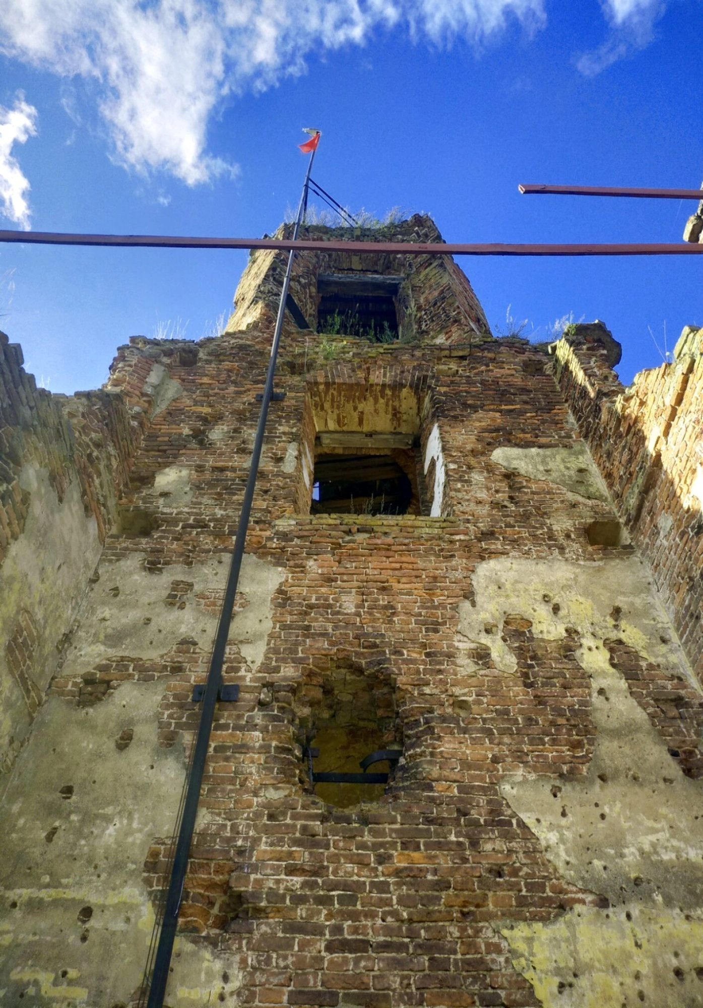 Примечательной деталью на вершине этих печальных руин является небольшой красный флаг, водружённый защитниками крепости. Этот символ несгибаемой воли и мужества советских солдат, державших оборону в условиях полной блокады, контрастирует с мирным предназначением самого здания, превращённого войной в руины. Ныне эти останки храма пребывают в состоянии вечной памяти о подвиге защитников Отечества и являются объектом культурного наследия, напоминая потомкам о цене мира и хрупкости человеческих творений перед лицом войны.