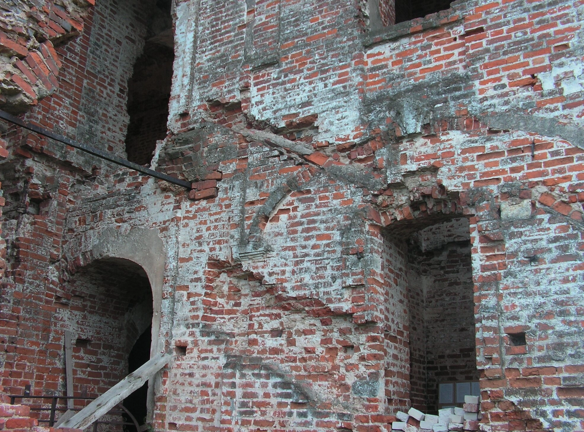 На представленной фотографии запечатлены величественные руины Церкви Смоленской Иконы Божией Матери, расположенной в исторической усадьбе Ново-Горбово Московской области. Храм был возведён в XIX веке из красного кирпича в традиционном русском церковном стиле, о чём свидетельствуют сохранившиеся арочные проёмы и элементы кладки. Несмотря на значительные разрушения, остатки стен сохраняют следы былого благолепия и духовного значения этого места.