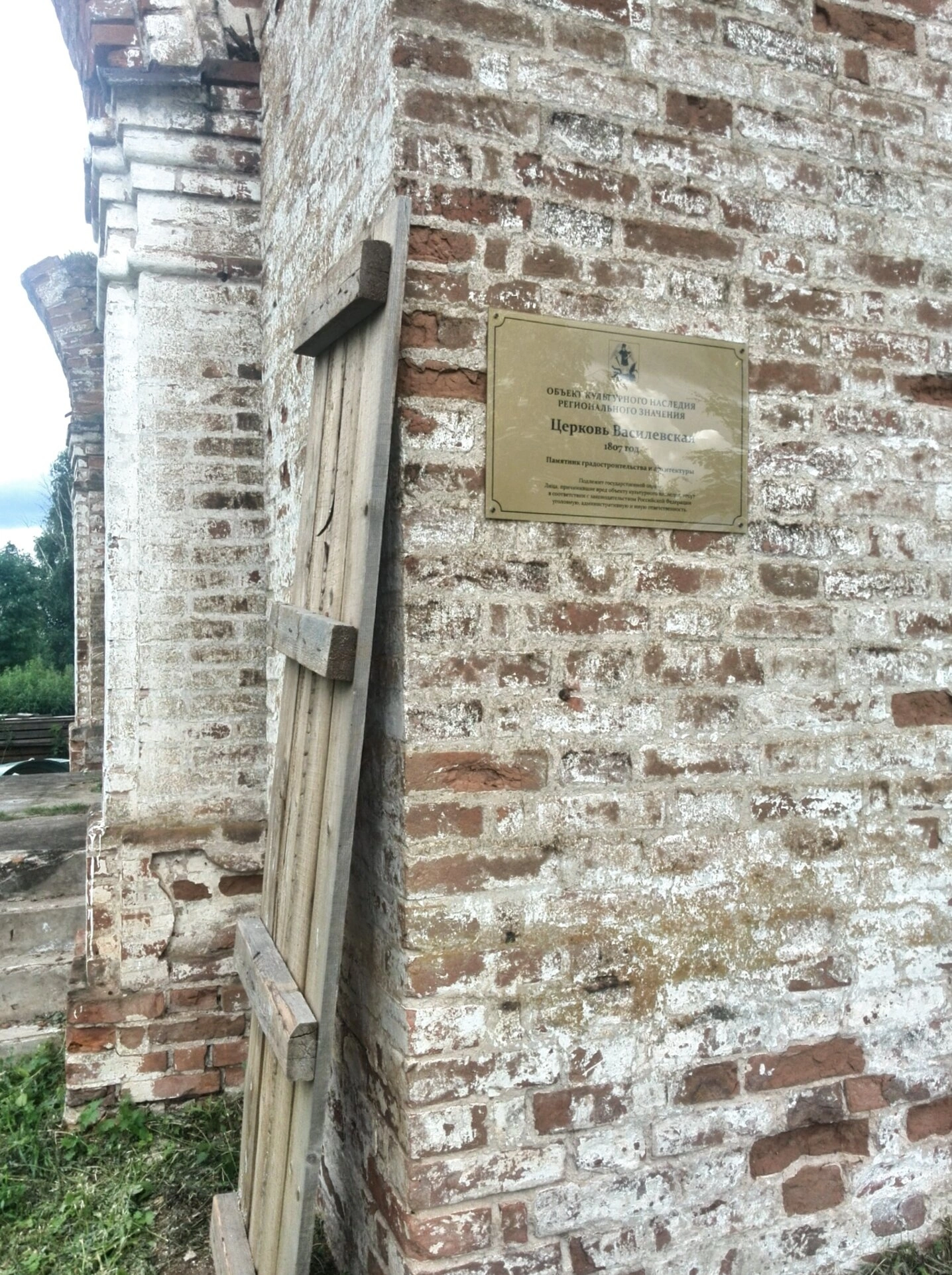 Святыня была возведена в 1807 году в честь одного из трёх вселенских святителей и учителей — святителя Василия Великого. Этот храм является ярким памятником русского северного деревянного зодчества конца XVIII — начала XIX веков, хотя до нашего времени он дошёл в состоянии благородной руины. Как гласит табличка, укреплённая на стене, церковь состоит под государственной охраной как объект культурного наследия, являясь немым свидетелем истории и духовной жизни русского Севера.