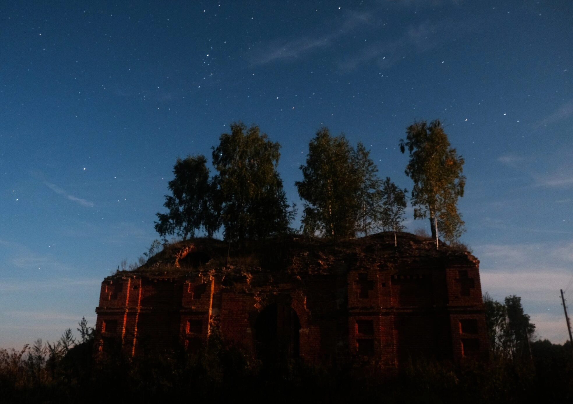 Руины Церкви Владимирской иконы Божией Матери в Кудрино ночью