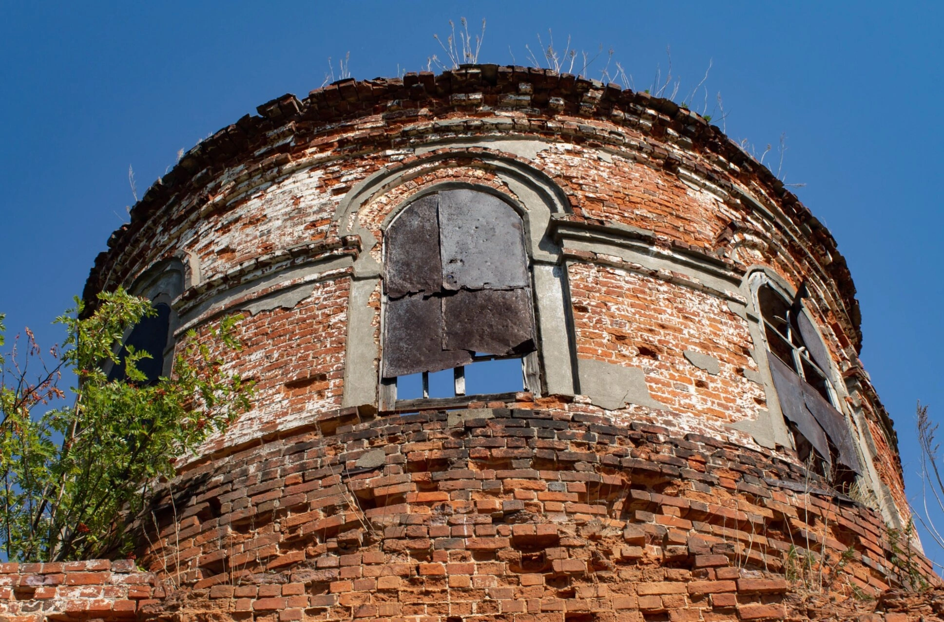 Особый интерес представляют оконные проёмы арочной формы, один из которых частично закрыт металлическими листами для консервации памятника. Декоративное оформление фасадов включает в себя пилястры и фигурные карнизы, характерные для храмовой архитектуры периода позднего классицизма. Сохранившиеся элементы позволяют судить о былом изяществе и благолепии этого духовного центра.