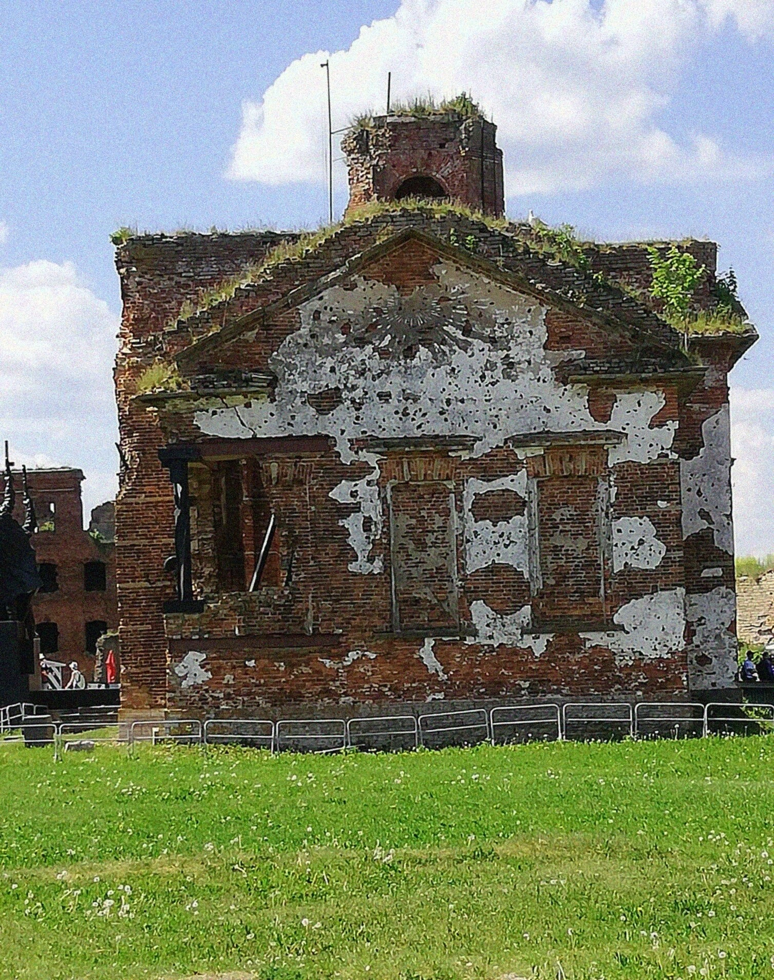 На представленной фотографии запечатлены величественные руины храма в честь Рождества святого Пророка, Предтечи и Крестителя Господня Иоанна, расположенного в исторической крепости Орешек на острове у города Шлиссельбург. Святыня была воздвигнута в 1826-1827 годах по проекту архитектора Александра Штауберта для нужд гарнизона крепости и освящена в честь небесного покровителя императора Иоанна III Антоновича, содержавшегося здесь в заточении.