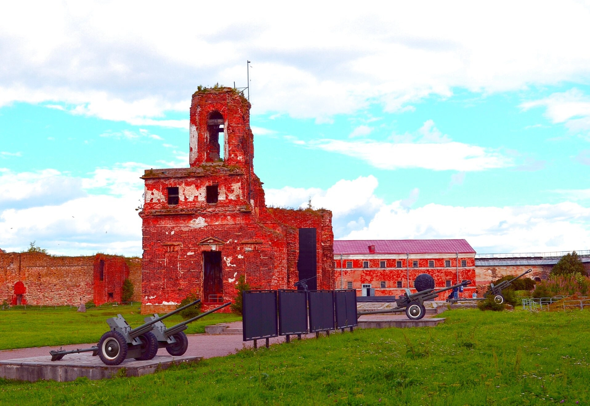 На представленной фотографии запечатлены благоговейные руины собора Рождества Святого Иоанна Предтечи, расположенного в древней крепости Орешек на Ореховом острове. Этот храм, возведённый в первой половине XIX столетия по проекту архитектора А.Е. Штауберта, являлся духовным центром крепости и выдающимся памятником русского церковного зодчества.