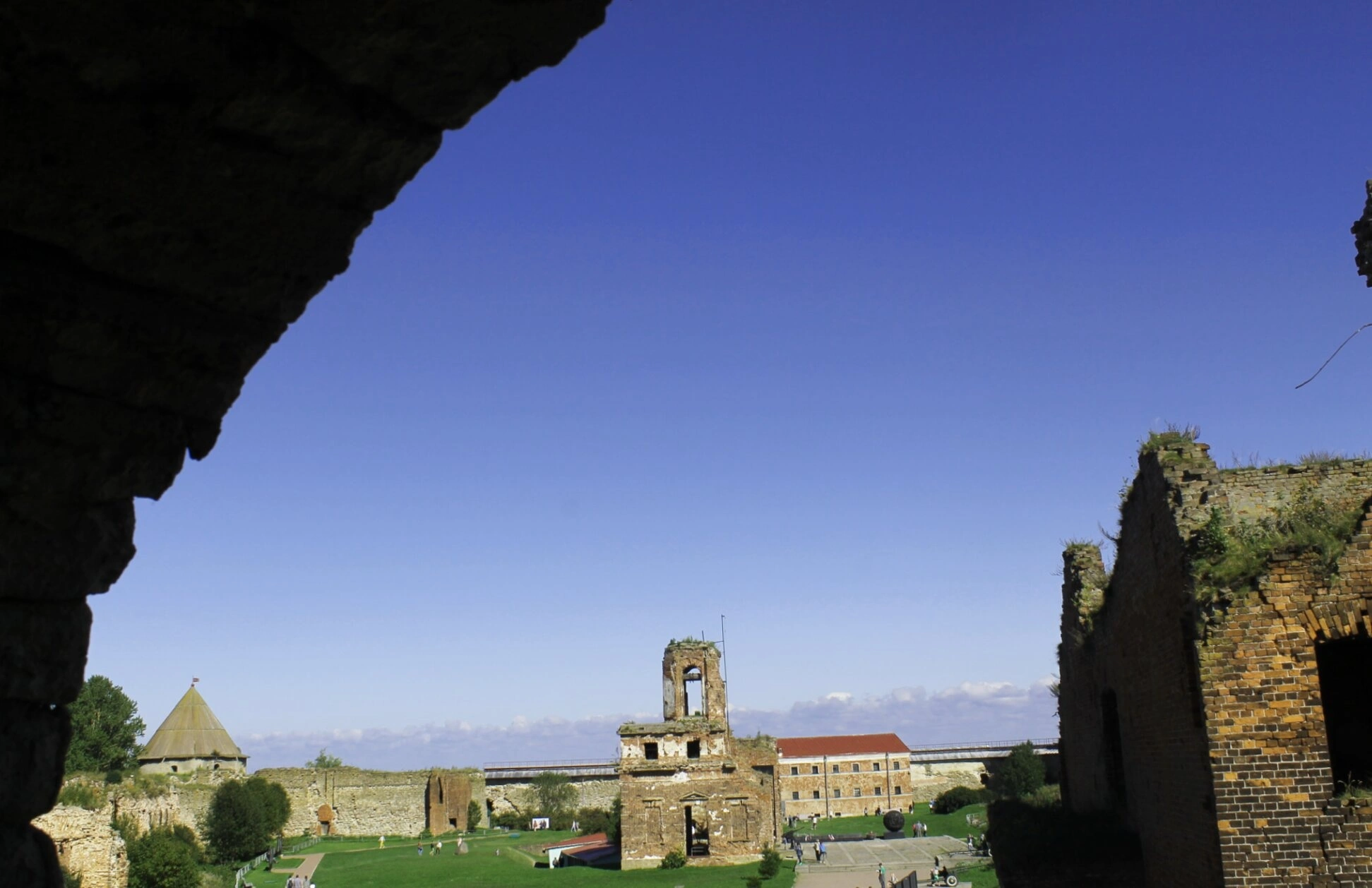 Вокруг святых руин возвышаются крепостные стены и башни, свидетельствующие о былом могуществе сей цитадели, основанной благоверным князем Юрием Даниловичем в лето 1323 от Рождества Христова. Крепость сия, именуемая также Ореховой, на протяжении столетий служила щитом православной земли, претерпев шведское пленение и вновь возвращённая под державу российскую в 1702 году.