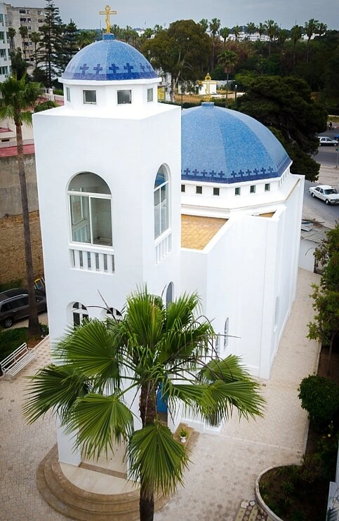 На представленной фотографии запечатлён храм Воскресения Христова Русской православной церкви, находящийся в марокканской столице — городе Рабате. Это духовный центр для православных верующих, проживающих в Королевстве Марокко и его окрестностях.