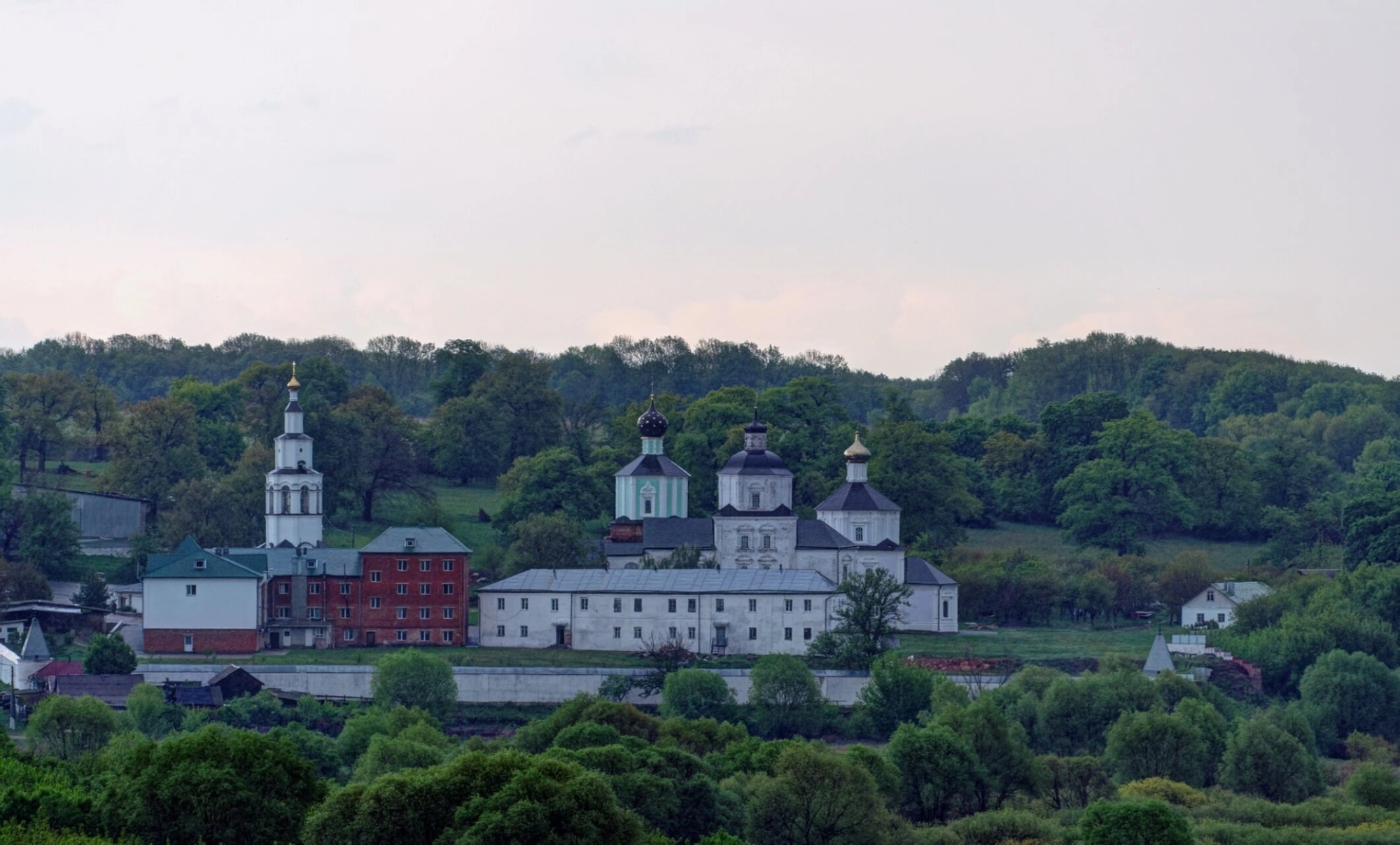 На представленной фотографии запечатлён Рыльский Свято-Николаевский мужской монастырь — одна из древнейших православных обителей Курской земли, освящённая во имя святителя Николая Чудотворца. Монастырь располагается в живописной местности на окраине города Рыльска, на юго-западных склонах Среднерусской возвышенности, что наделяет его особой благодатной тишиной и умиротворением.