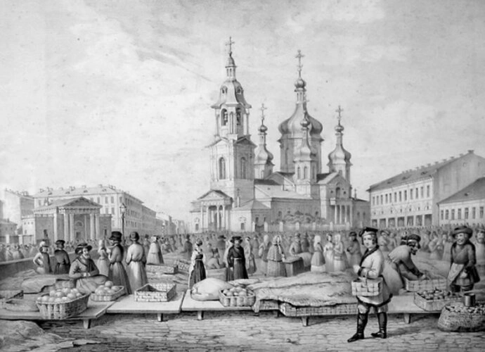Сенная площадь и храм Спаса на Сенной в Санкт-Петербурге, 1830-е годы