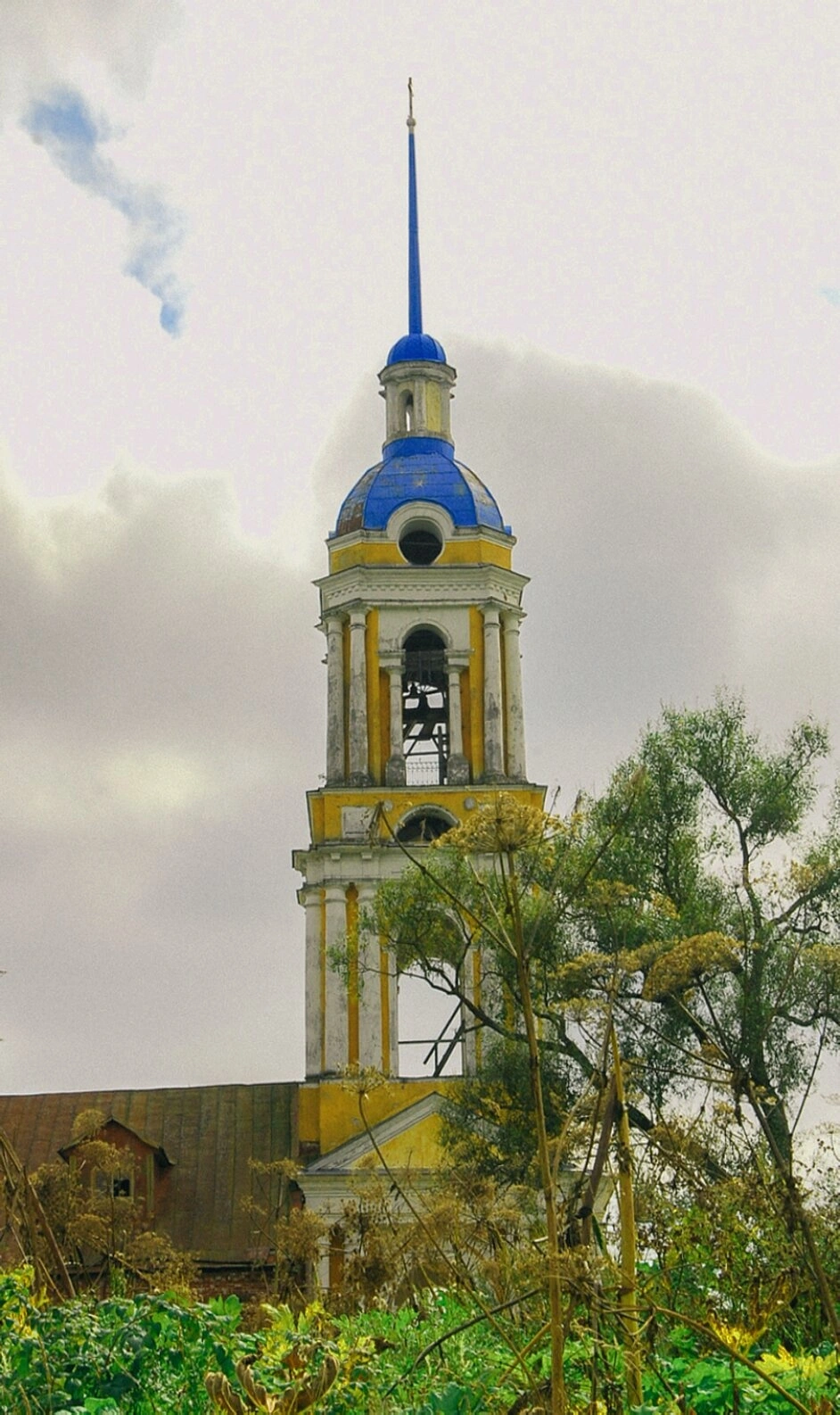 Пасмурное небо, затянутое облаками, наполняет композицию настроением тихой сосредоточенности, напоминая о быстротечности земного бытия. Несмотря на запустение, колокольня сохраняет величественный вид и продолжает оставаться значимым памятником православной культуры Подмосковья, призывающим к сохранению и возрождению поруганных святынь.