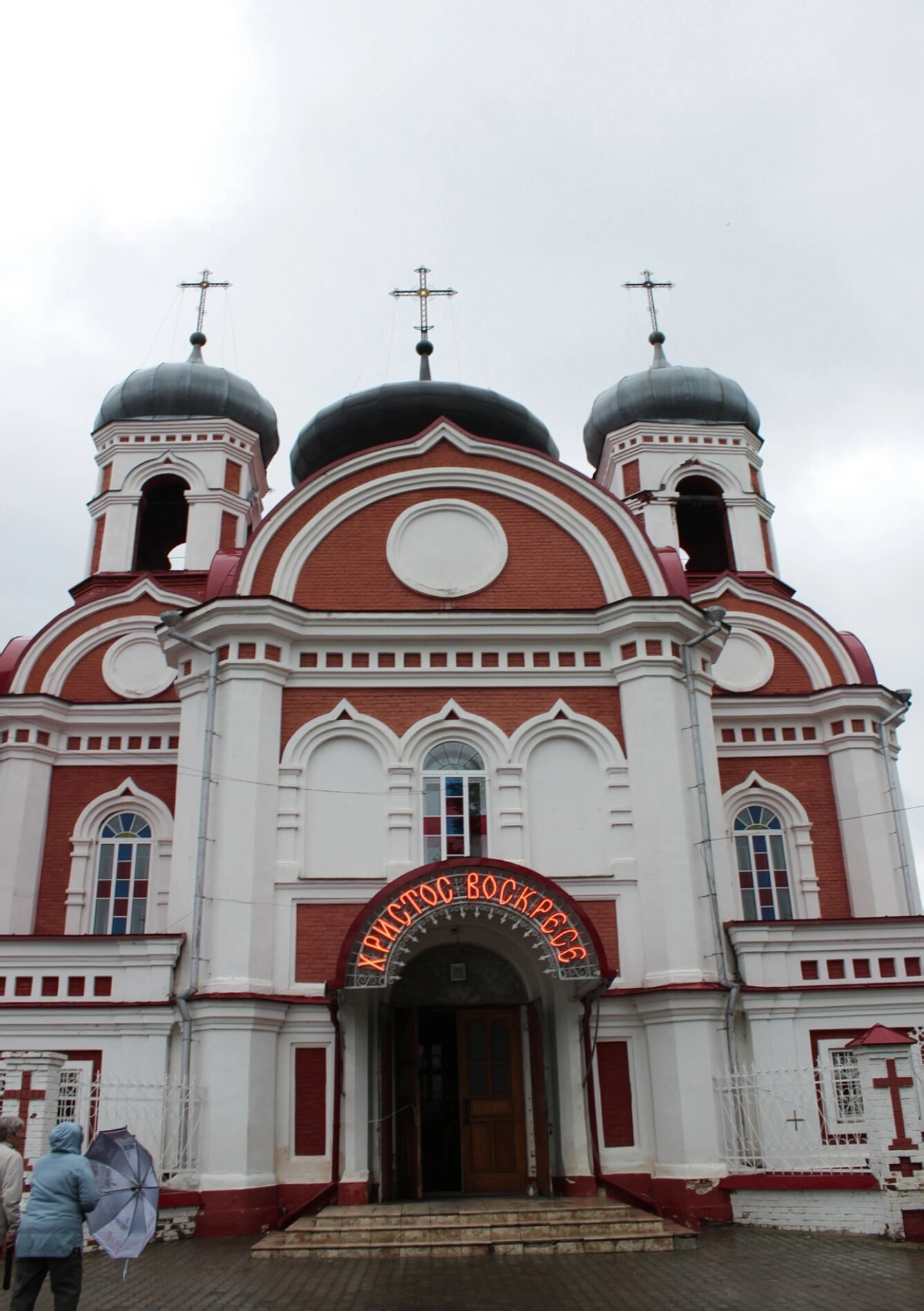 На представленной фотографии запечатлён величественный Смоленский собор, находящийся в городе Козьмодемьянске Республики Марий Эл. Этот православный храм является одним из духовных центров региона и освящён в честь чудотворного образа Пресвятой Богородицы «Одигитрия» Смоленская.
