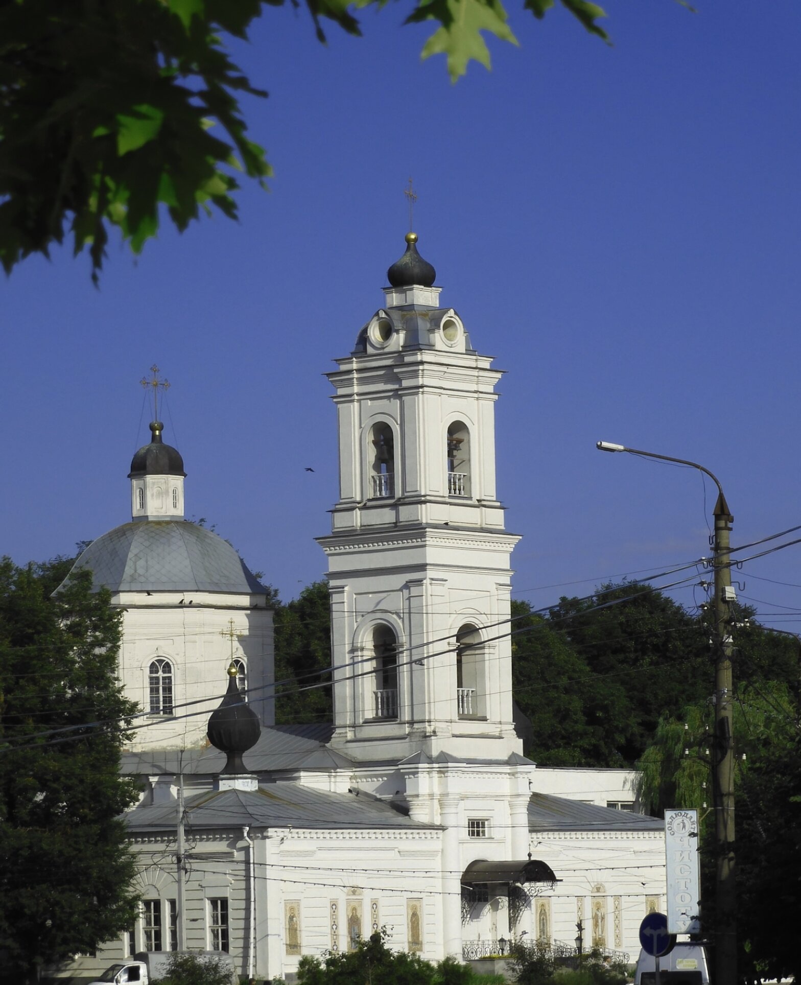 Собор, построенный в 1789 году на средства прихожан, является архитектурной доминантой площади Ленина и духовным центром города. На снимке хорошо просматривается стройная трёхъярусная колокольня и центральный световой барабан, несущий массивный золочёный купол. Фасад храма выполнен в стиле классицизма с характерной строгостью и симметрией форм.