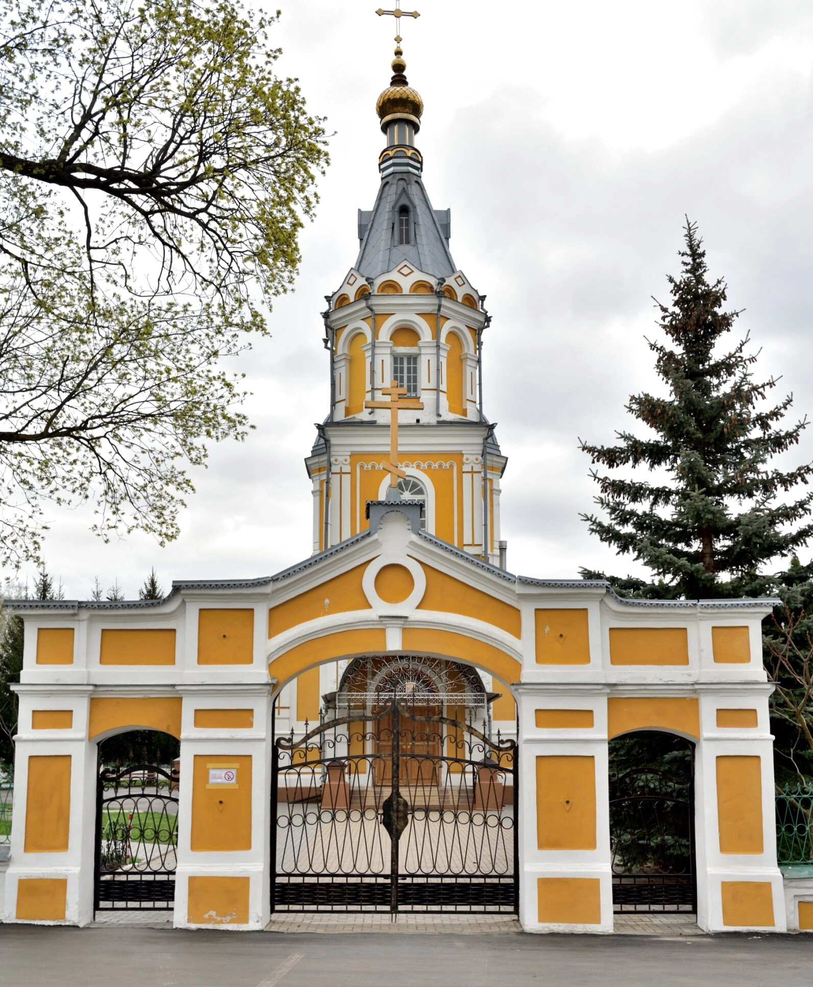На представленной фотографии запечатлены Святые ворота с надвратной колокольней собора Чуда Архистратига Михаила в Хонех, что расположен на Красной площади города Новозыбкова. Этот величественный храм, также известный среди горожан как Чудо-Михайловский собор, является выдающимся памятником православной архитектуры и духовным центром региона.