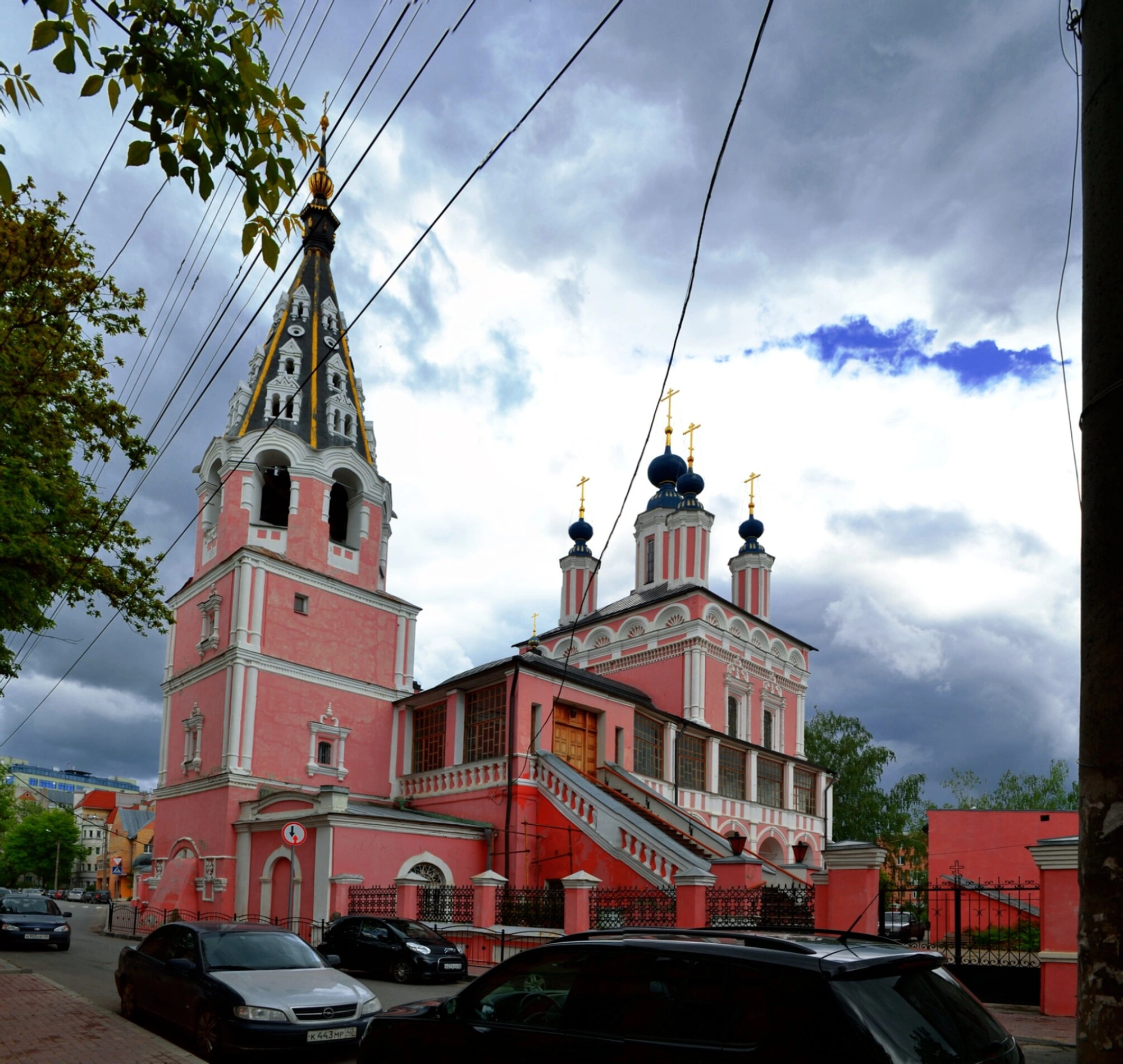 Величественный храм, возведённый в стиле московского барокко конца XVII столетия, предстаёт во всём своём благолепии. Его розовые стены, украшенные традиционным зубчатым поясом и священными крестами, устремляются ввысь. Архитектурной доминантой является стройная шатровая колокольня, увенчанная золочёной главкой со шпилем, которая гармонично дополняет основной объём, завершённый изящными голубыми куполами.