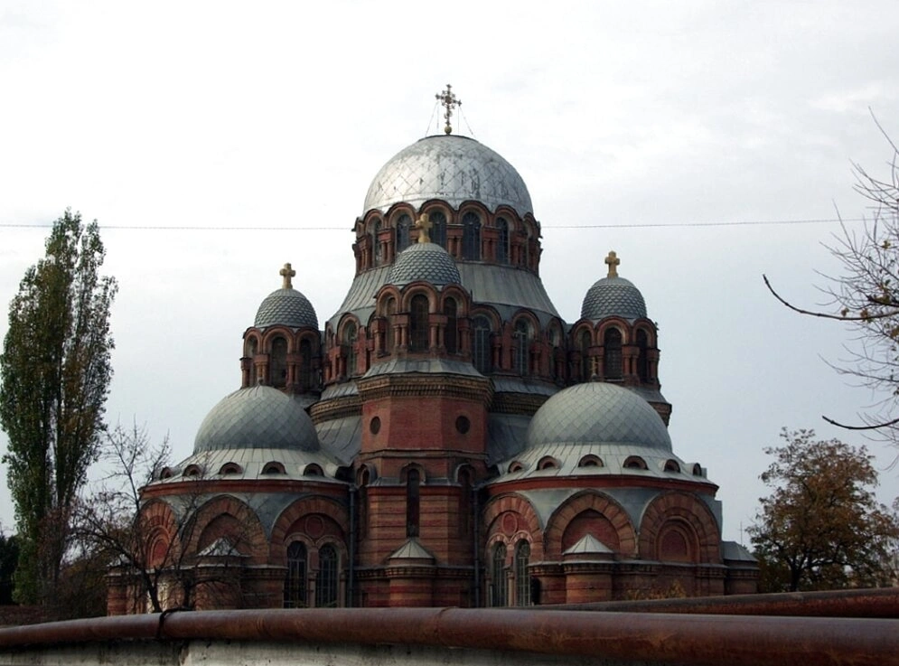 На представленной фотографии запечатлён величественный Собор в честь иконы Божией Матери «Знамение» в городе Хасавюрте Республики Дагестан. Этот православный храм, являющийся одной из главных духовных святынь региона, был возведён в 1903–1904 годах на добровольные пожертвования жителей слободы и всего Хасавюртовского округа при активном участии терских казаков.