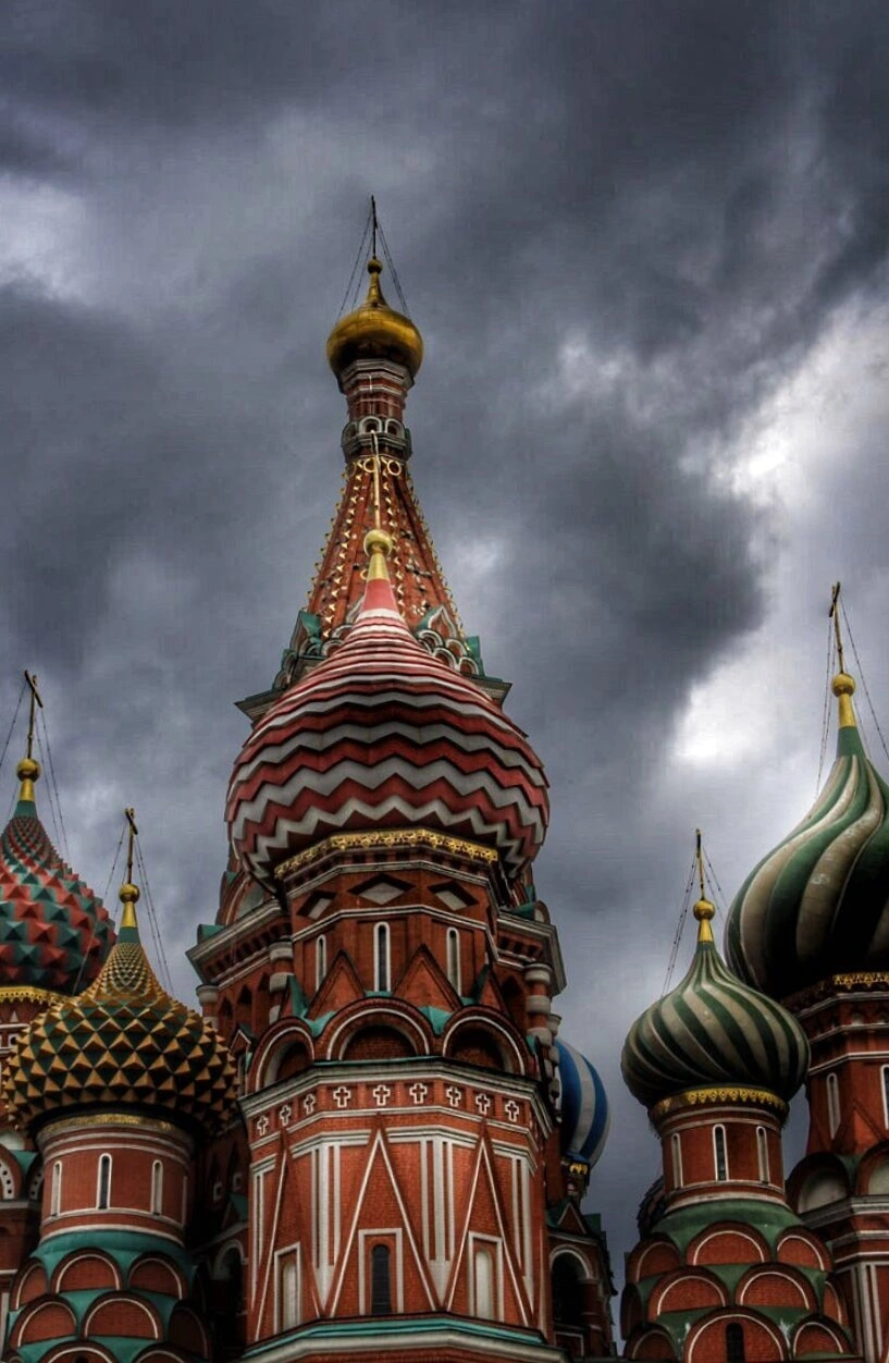 На представленной фотографии запечатлён всемирно известный православный собор — Храм Василия Блаженного, также именуемый Собором Покрова Пресвятой Богородицы, что на Рву. Он возвышается в самом сердце России, на Красной площади Москвы, по точным координатам: 55.7525 северной широты и 37.62305556 восточной долготы. Этот сакральный памятник, возведённый по повелению царя Иоанна Грозного в середине XVI века в честь взятия Казанского ханства, является не только символом столицы, но и воплощением духовной силы и архитектурного гения русского народа.