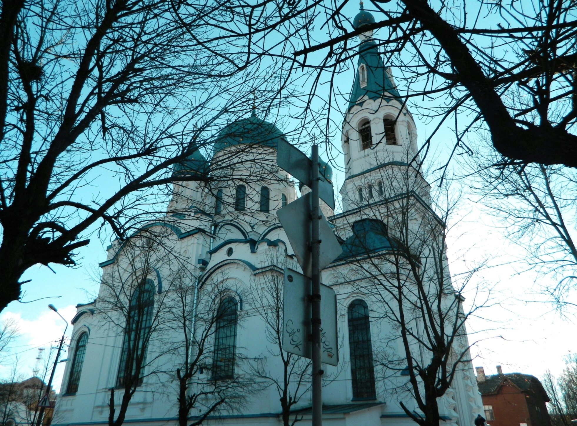 На представленной фотографии запечатлён величественный Собор Покрова Пресвятой Богородицы, расположенный в историческом центре Гатчины. Этот выдающийся православный храм был возведён в 1914-1917 годах по проекту архитектора Л.М. Харламова и освящён в честь Покрова Божией Матери.