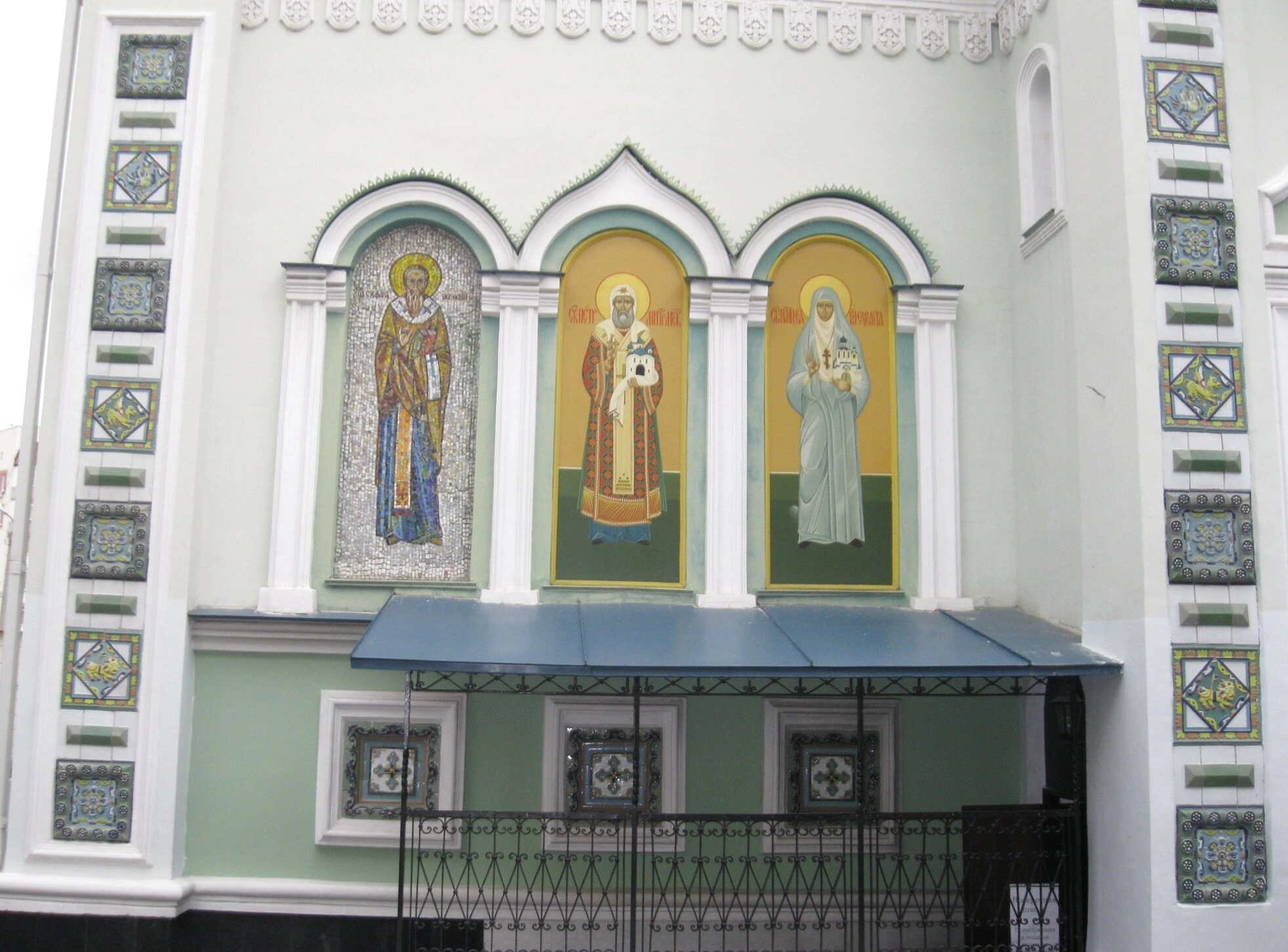 Особого внимания на фасаде заслуживают великолепные мозаичные образа, выполненные в древнерусской традиции. Среди них лики почитаемых святых, в том числе и самого праведного Симеона Верхотурского, чьё имя носит собор. Эти мозаики, созданные с большим искусством, являются не только украшением, но и важным элементом духовного свидетельства.