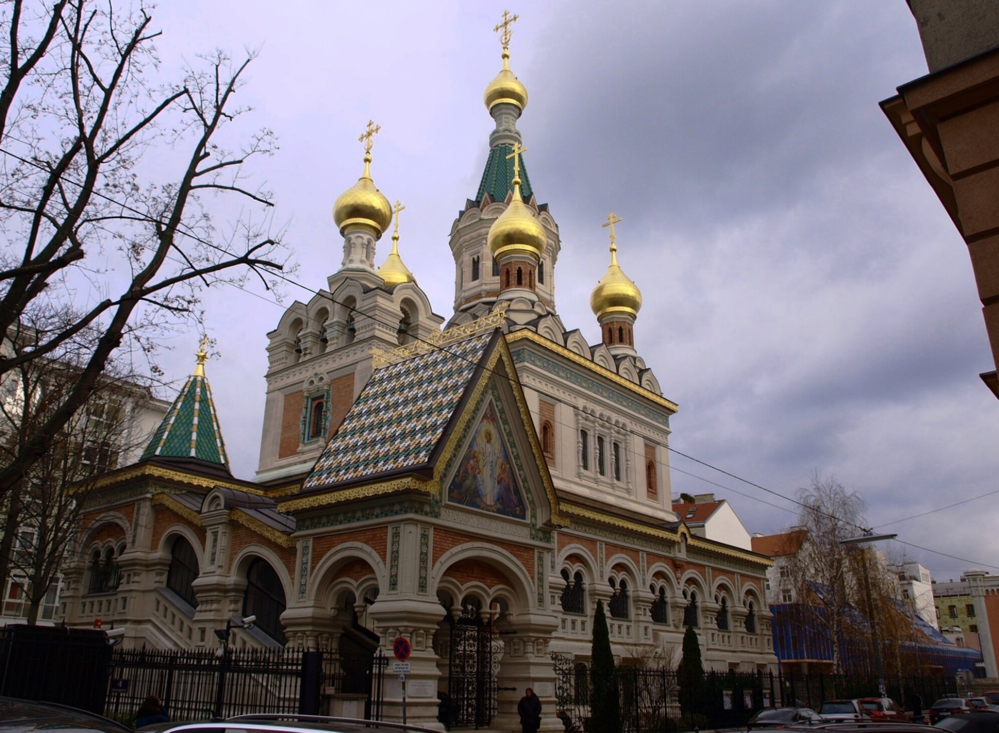 На фотографии запечатлён величественный Собор Святителя Николая Чудотворца, также известный как Никольский собор, расположенный в столице Австрии. Этот православный храм, являющийся кафедральным собором Венской и Австрийской епархии Русской Православной Церкви, представляет собой выдающийся памятник русской церковной архитектуры за пределами России.