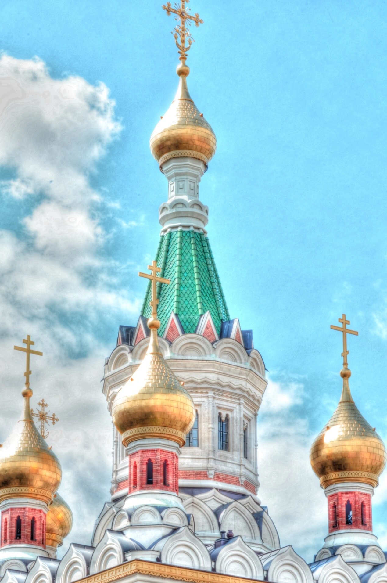 Архитектурный облик собора узнаваем благодаря характерным золотым куполам-луковкам, увенчанным православными крестами, которые сияют под голубым небом Австрии. Фасад здания выполнен из красного кирпича и украшен белокаменными декоративными элементами, аркатурными поясами и кокошниками, что создаёт неповторимый образ русского храма в центре Европы.