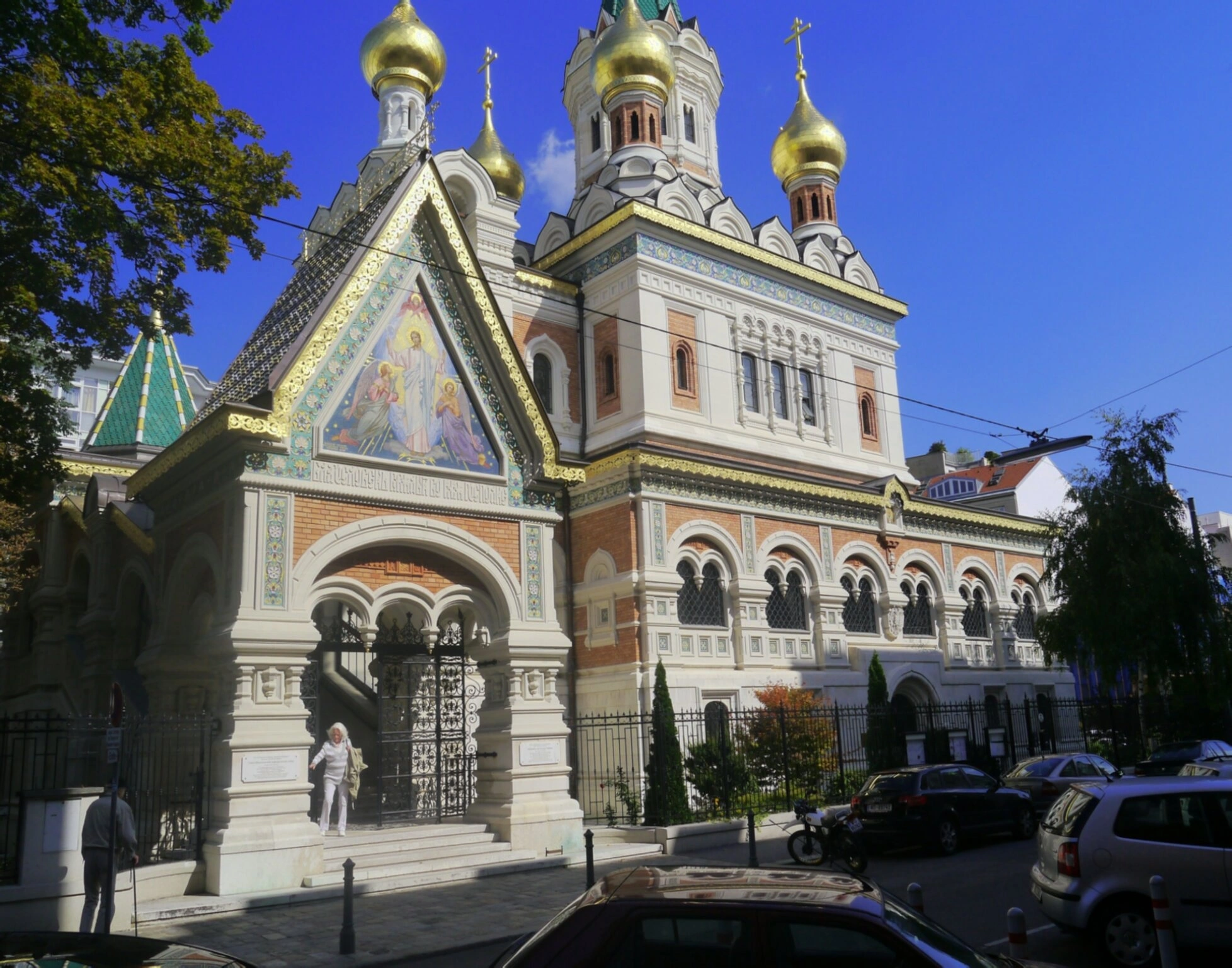 На фотографии запечатлён величественный Собор Святителя Николая Чудотворца, являющийся кафедральным храмом Венской и Австрийской епархии Русской Православной Церкви. Этот духовный центр православия в Австрии расположен в самом сердце Вены, на улице Яуэргассе, и представляет собой выдающийся памятник русской церковной архитектуры за пределами Отечества.