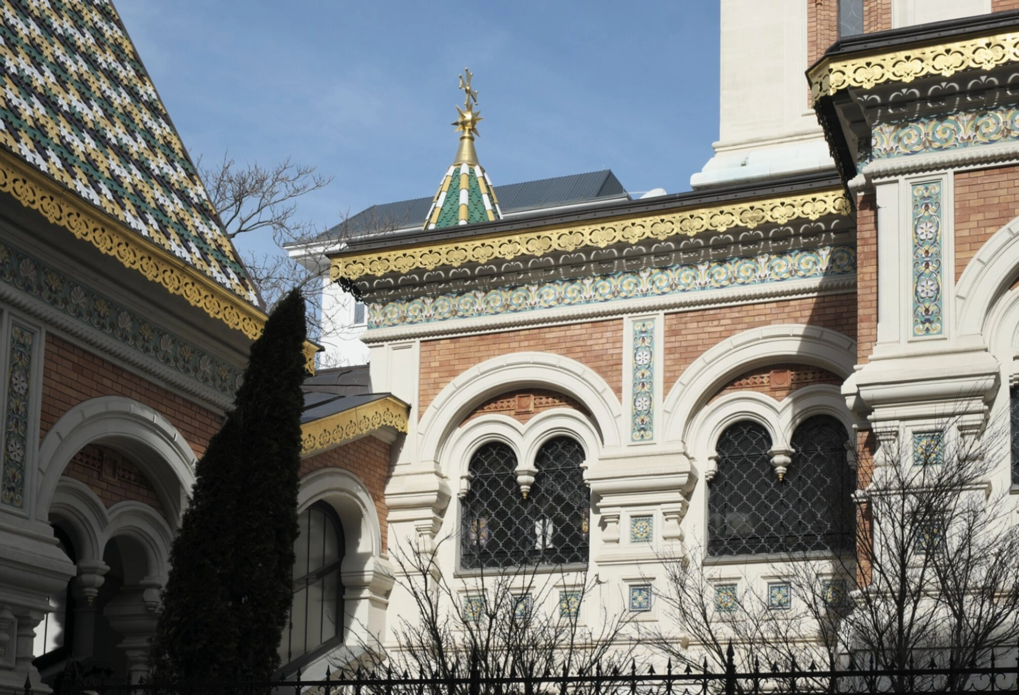 На представленной фотографии запечатлён фрагмент величественного Собора Святителя Николая Чудотворца, являющегося кафедральным собором Венской и Австрийской епархии Русской Православной Церкви. Храм расположен в столице Австрии и является духовным центром для православных верующих.