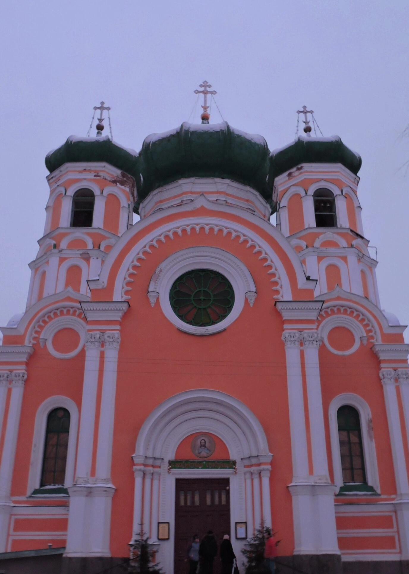 Собор был построен в 1846-1852 годах по проекту архитектора Романа Ивановича Кузьмина и представляет собой прекрасный образец русско-византийского стиля. Храм отличается гармоничными пропорциями и богатым декоративным убранством. Фасад здания выполнен в оранжевых тонах с изящными белыми деталями: пилястрами, обрамлениями окон и декоративными арками. Венчают сооружение три тёмно-зелёных купола, увенчанных златыми крестами, символизирующими Святую Троицу.