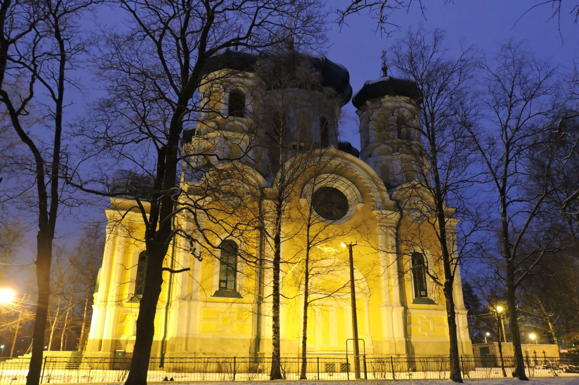- Собор Святого Апостола Павла в Гатчине: вечерняя подсветка