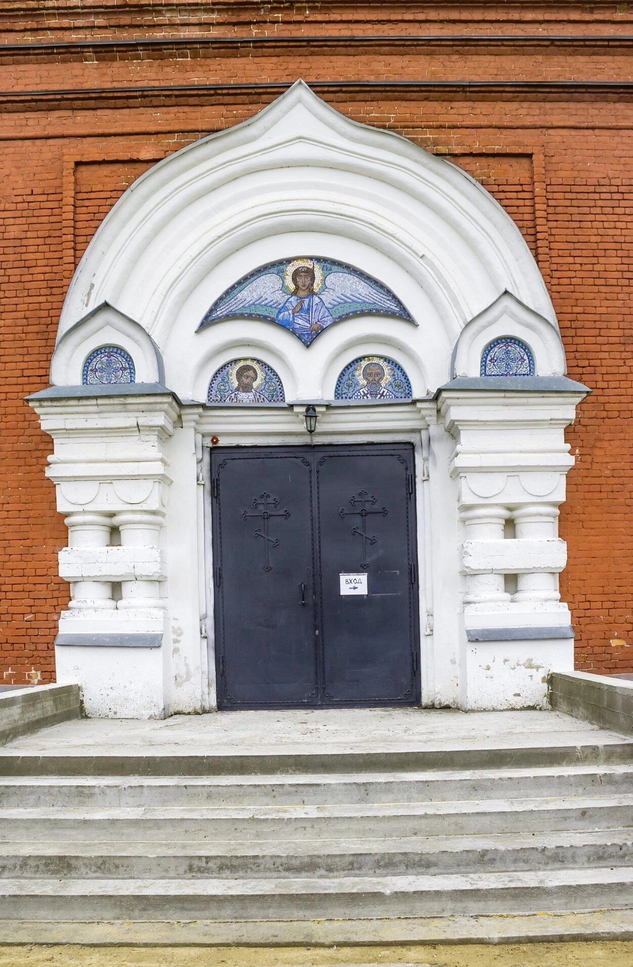 На фотографии хорошо виден арочный портал главного входа, обрамлённый килевидным кокошником и увенчанный иконой. К входу ведёт каменная лестница, подчёркивающая монументальность сооружения. В советские годы храм, как и многие другие, был закрыт и подвергся разорению, однако в настоящее время полностью возвращён Русской Православной Церкви, в нём регулярно совершаются богослужения.