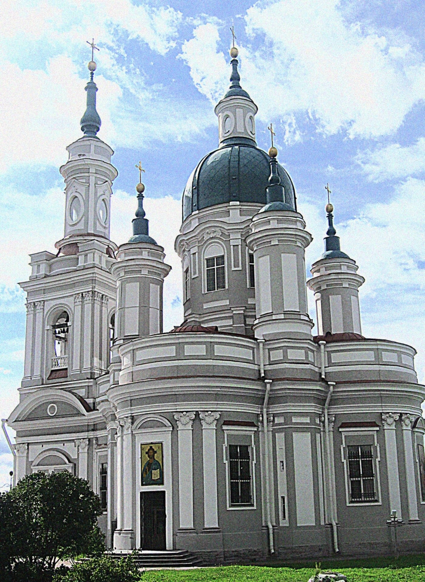 Собор был возведён в 1764–1782 годах по повелению императрицы Екатерины II. Автором проекта выступил знаменитый итальянский зодчий Антонио Ринальди, трудившийся при российском императорском дворе. Храм представляет собой блестящий образец переходного стиля от барокко к классицизму, что воплотилось в строгой элегантности форм и сдержанном декоре.