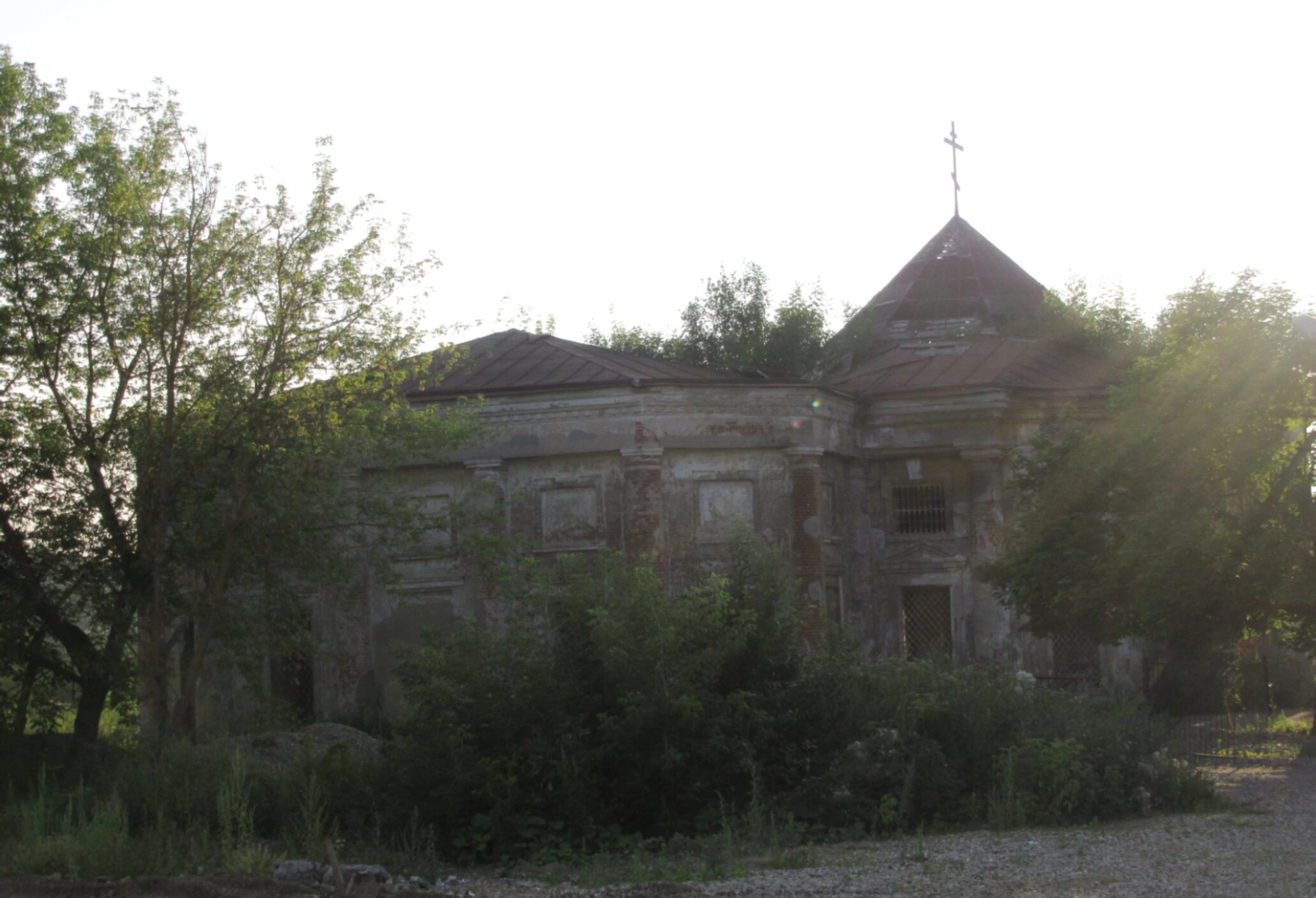 Собор окружён густой растительностью: деревья и кустарники подступают вплотную к стенам святого места, а территория зарастает травой, что придаёт ему особый, скорбный вид забвения. Несмотря на запустение, храм сохраняет свои величественные архитектурные формы и духовную силу, напоминая о былой славе и величии Православия на Медынской земле. Чистое небо на заднем плане символически оттеняет земные трудности и указывает на надежду на возрождение этой святыни.