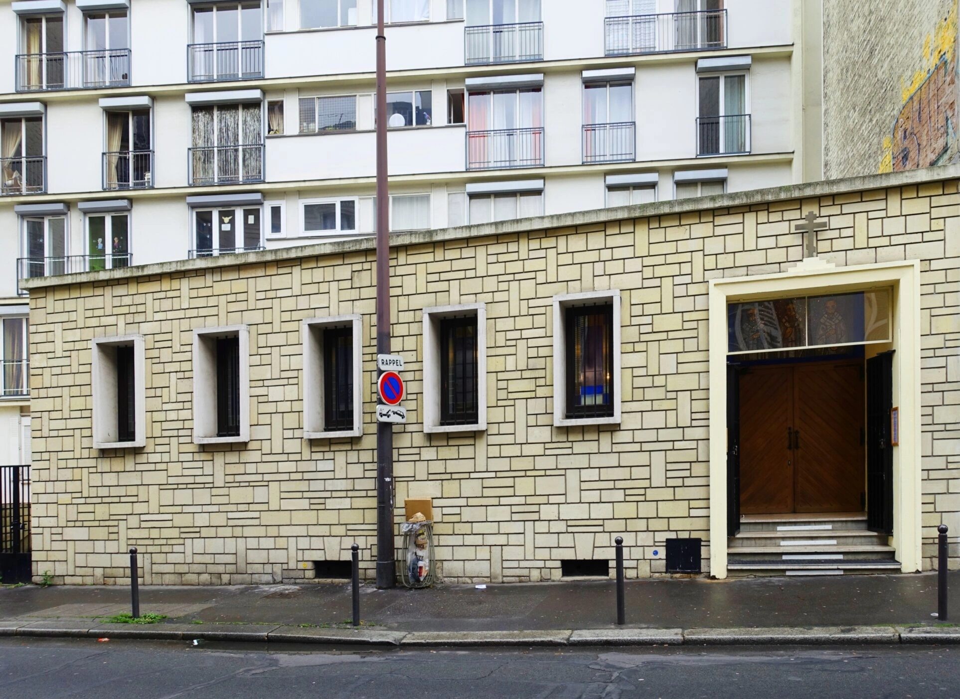 На представленной фотографии запечатлён собор Трёх Святителей, являющийся кафедральным собором Корсунской епархии Русской Православной Церкви в Париже. Храм располагается в 15-м округе французской столицы по адресу: улица Петель, 5.