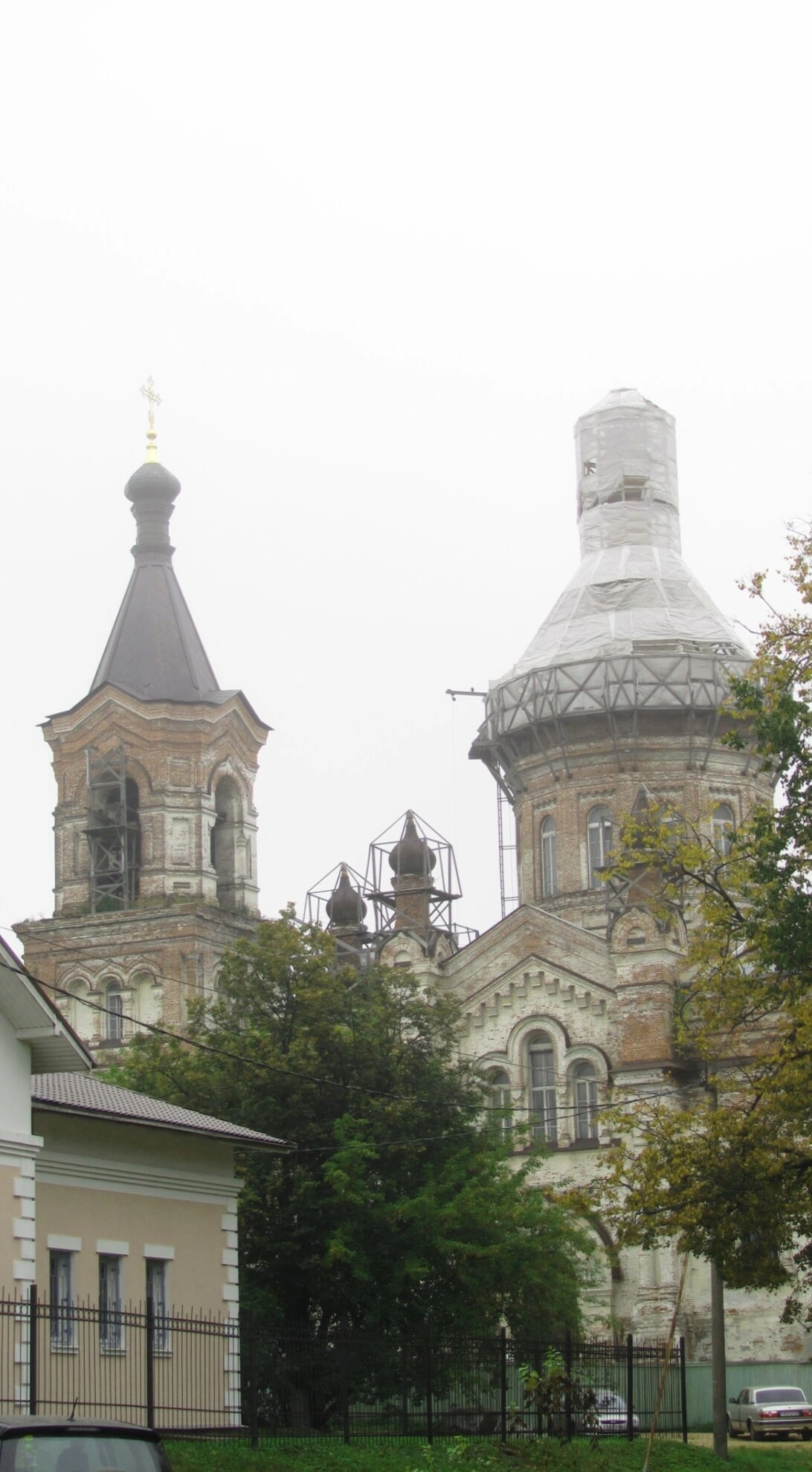 На снимке хорошо видны текущие реставрационные работы, о чём свидетельствуют установленные строительные леса. Храм был возвращён Русской Православной Церкви в 1991 году, и с того времени ведётся его постепенное восстановление силами благотворителей и прихожан. Реставрация направлена на возвращение собору его исторического облика и былого величия.
