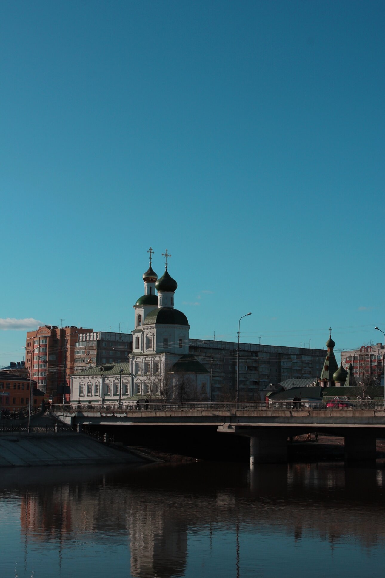На фотографии запечатлён величественный Собор Вознесения Господня, являющийся кафедральным собором Йошкар-Олинской и Марийской епархии. Этот православный храм, расположенный в столице Республики Марий Эл, был возведён в 2010 году и освящён Святейшим Патриархом Московским и всея Руси Кириллом. Белоснежные стены собора и златые купола, сияющие на солнце, создают образ неземной красоты и духовной торжественности.