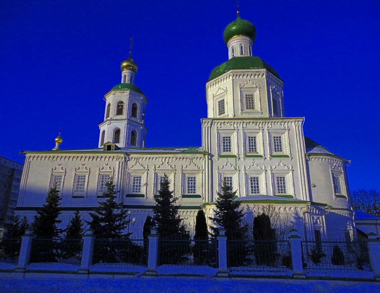 На фотографии запечатлён величественный Собор Вознесения Господня, являющийся кафедральным собором Йошкар-Олинской и Марийской епархии Русской Православной Церкви. Этот духовный центр Марий Эл расположен в столице республики, городе Йошкар-Оле, и освящён в честь одного из двунадесятых праздников — Вознесения Господня.
