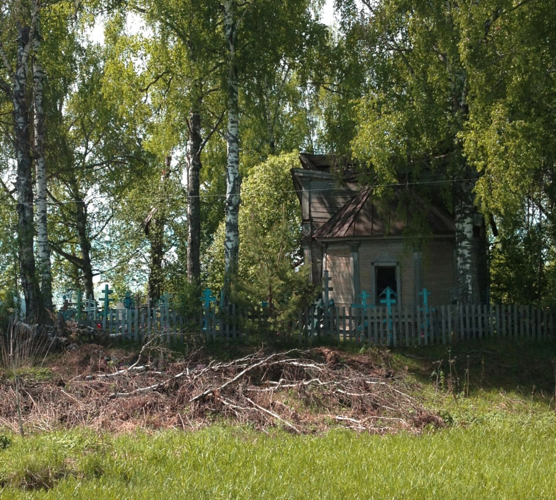 За церковной оградой, среди густых зарослей деревьев, просматриваются несколько голубых крестов, указывающих на наличие старого приходского кладбища. Это свидетельствует о том, что храм долгие годы служил духовным центром для местных жителей, которые находили здесь вечный покой.