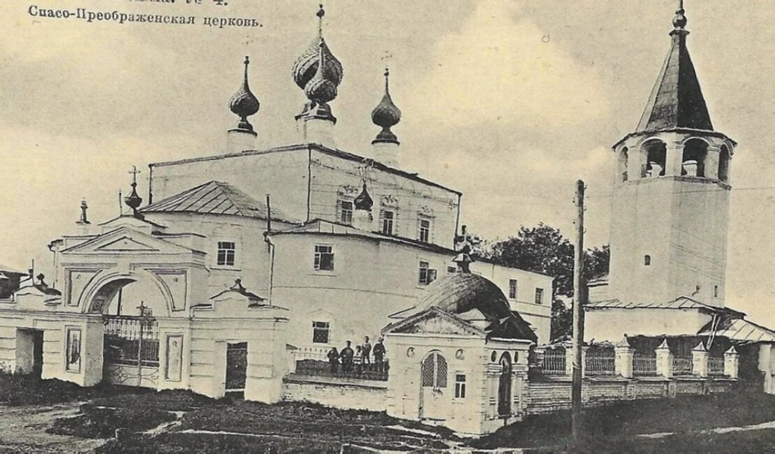 - Спасо-Преображенская церковь в городе Кинешма на исторической фотографии