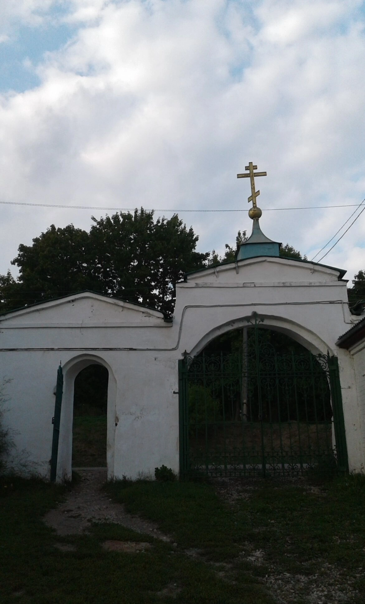 Перед самим храмовым зданием видны арочные Святые ворота с коваными металлическими решётками, которые традиционно являются символическим входом в церковную ограду, отделяющую мирскую суету от пространства молитвы и благодати. Слева от главного здания просматривается ещё один арочный проём, что свидетельствует о продуманной архитектурной композиции всего церковного комплекса.
