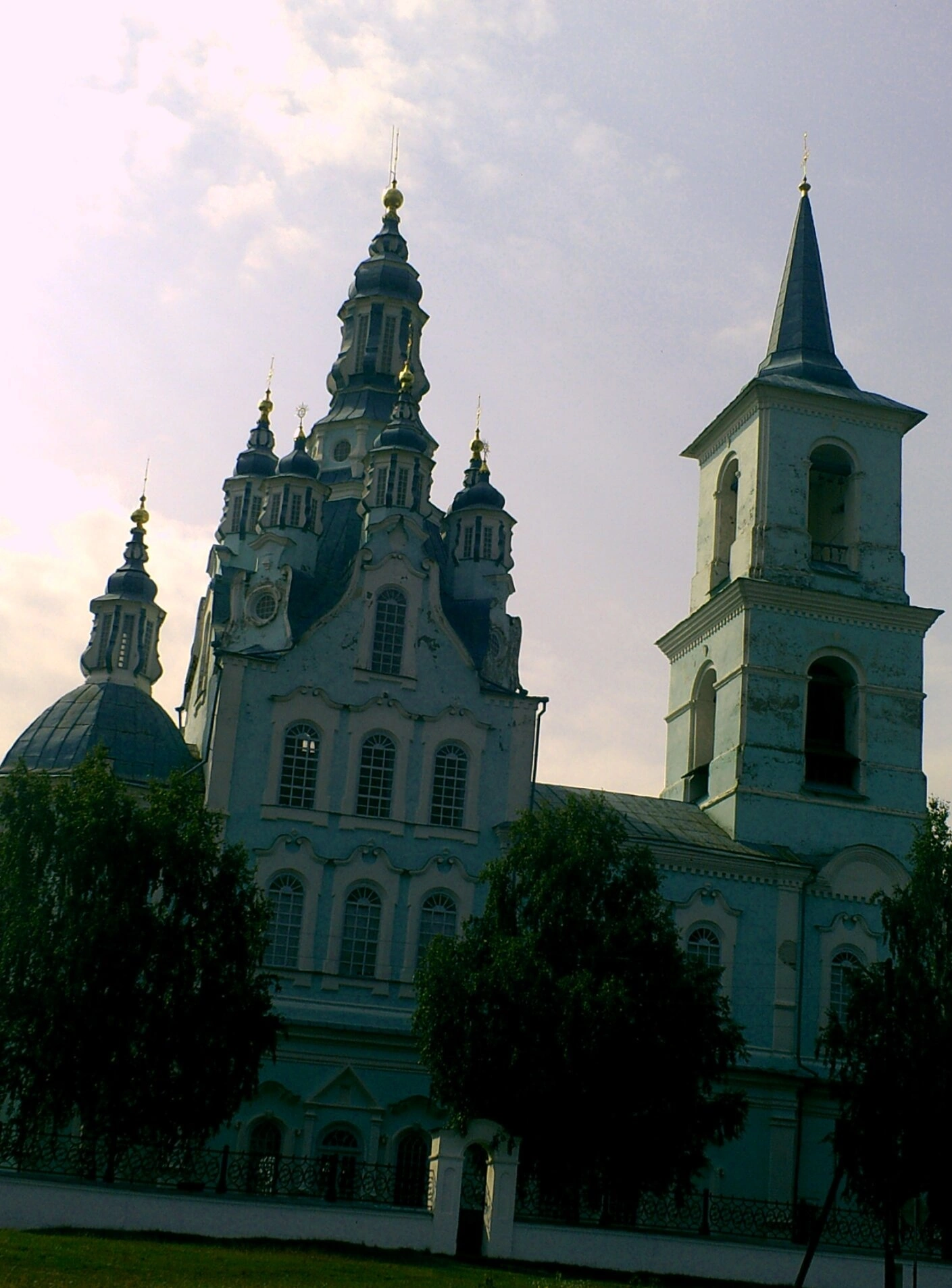 На представленной фотографии запечатлён величественный образ Спасо-Преображенской церкви, расположенной в селе Нижняя Синячиха Алапаевского района Свердловской области. Этот каменный двухэтажный храм, освящённый в честь Преображения Господня, является выдающимся памятником уральского культового зодчества конца XVIII — первой половины XIX века.