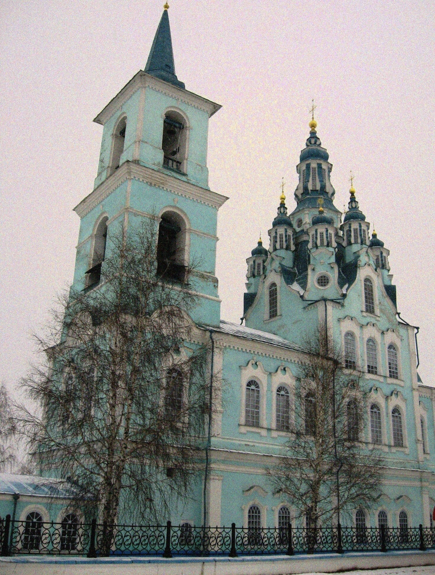 На представленной фотографии запечатлён величественный Спасо-Преображенский храм, расположенный в старинном уральском селе Нижняя Синячиха, что в Свердловской области. Этот каменный трёхпрестольный собор является выдающимся памятником русской православной архитектуры второй половины XVIII века и объектом культурного наследия народов Российской Федерации.