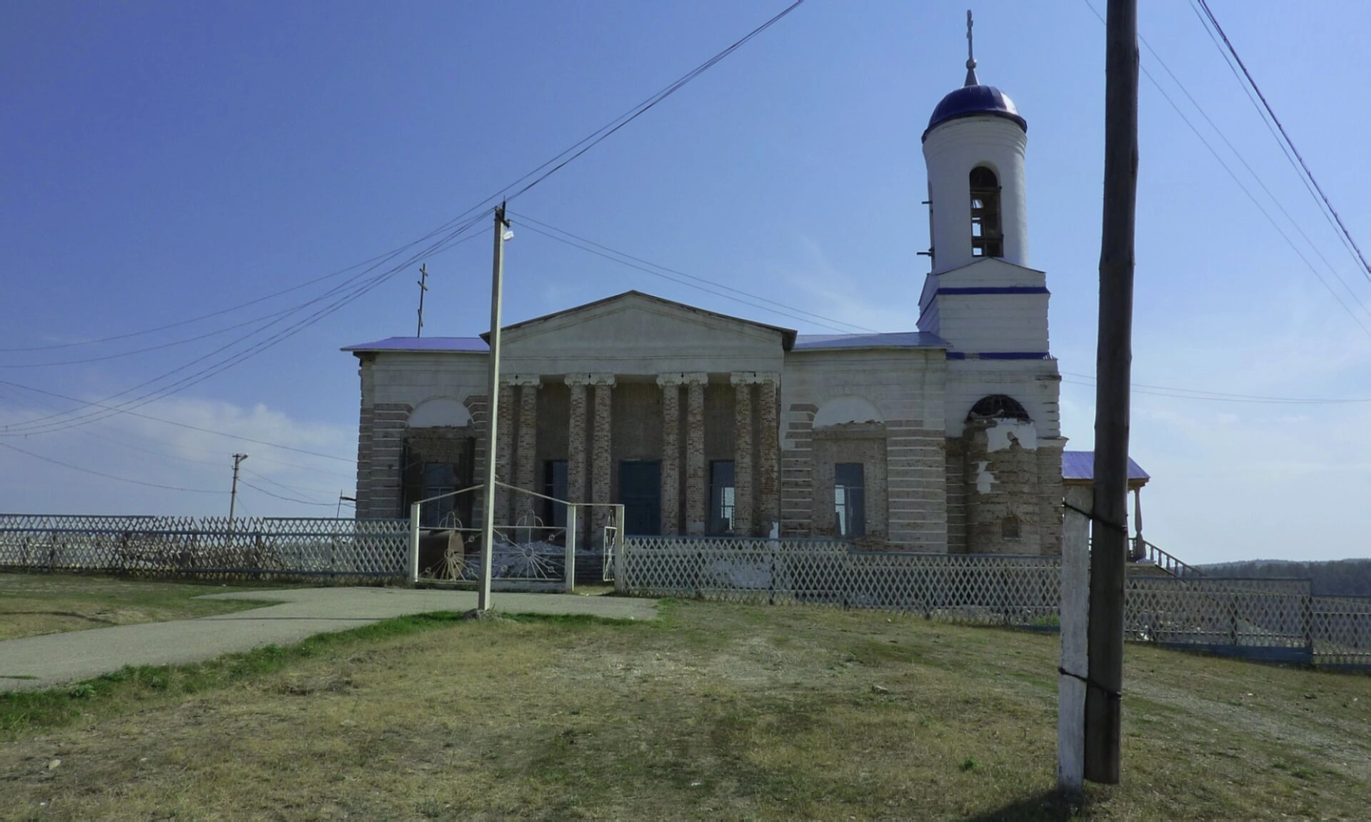 На представленной фотографии запечатлена Спасо-Преображенская церковь, расположенная в селе Зилаир Республики Башкортостан. Этот православный храм является значимым памятником церковной архитектуры XIX столетия, сохранившим свой исторический облик до наших дней.