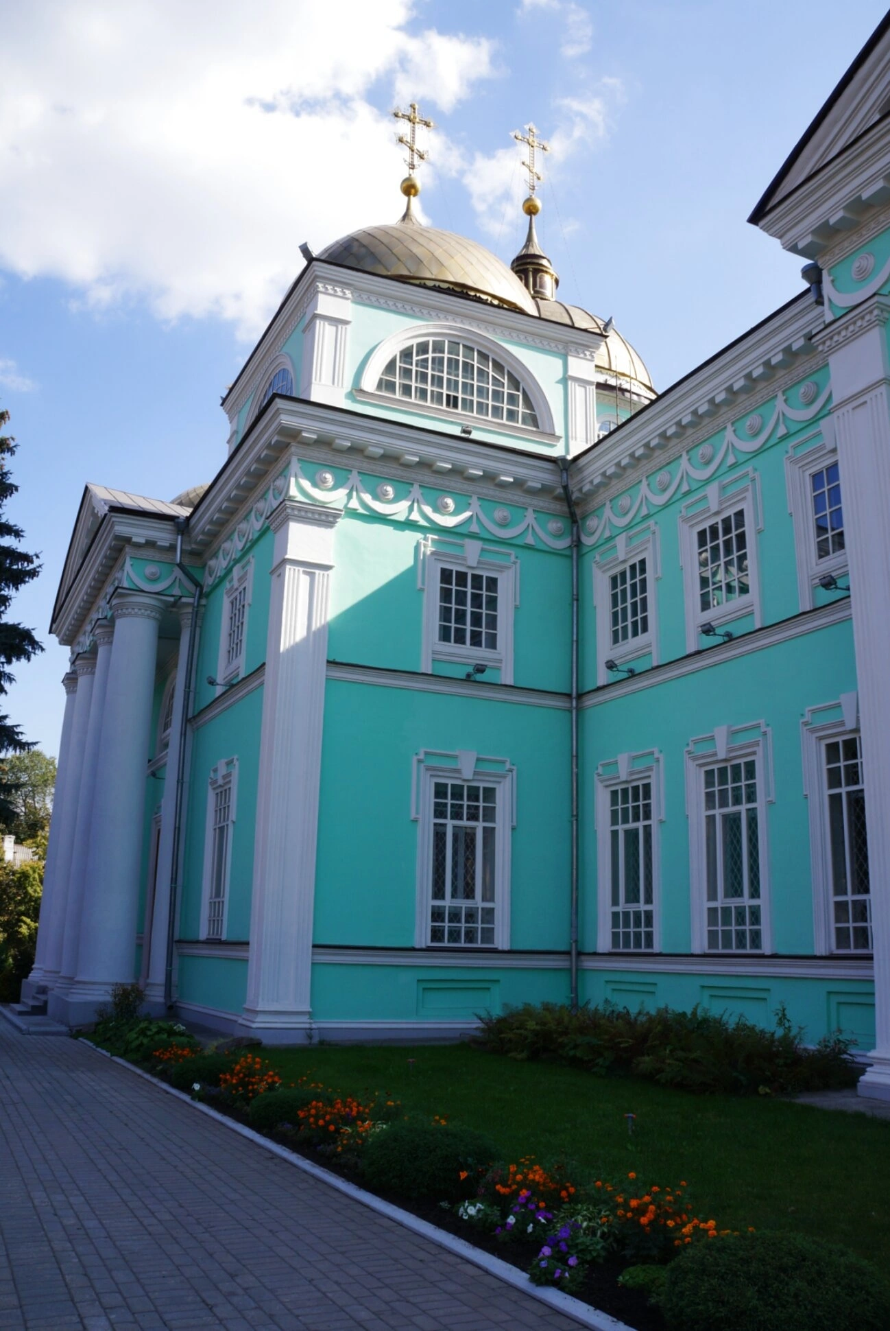 Собор, освящённый в честь Преображения Господня, был возведён в 1813 году на месте ранее стоявшего здесь деревянного храма. Белоснежные декоративные элементы и колонны эффектно контрастируют с бирюзовым цветом стен, создавая ощущение лёгкости и устремлённости ввысь. Золочёные купола, увенчанные православными крестами, сияют в лучах солнца, символизируя свет веры и благодати.