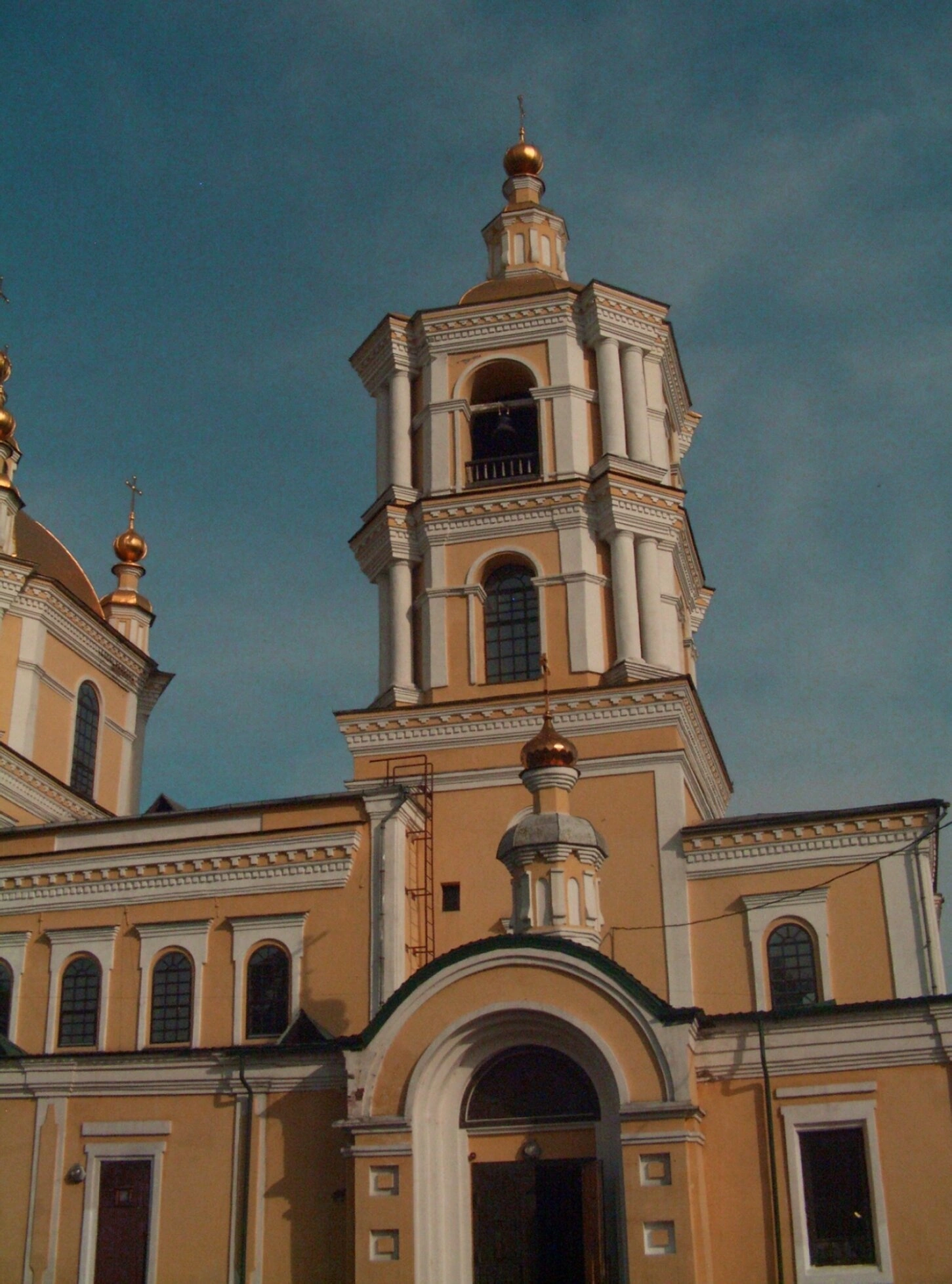 На представленной фотографии запечатлён величественный Спасо-Преображенский кафедральный собор, являющийся одной из главных православных святынь города Новокузнецка. Храм освящён в честь Преображения Господня — одного из великих двунадесятых праздников, символизирующего божественное преображение и явление неизречённой славы Спасителя.