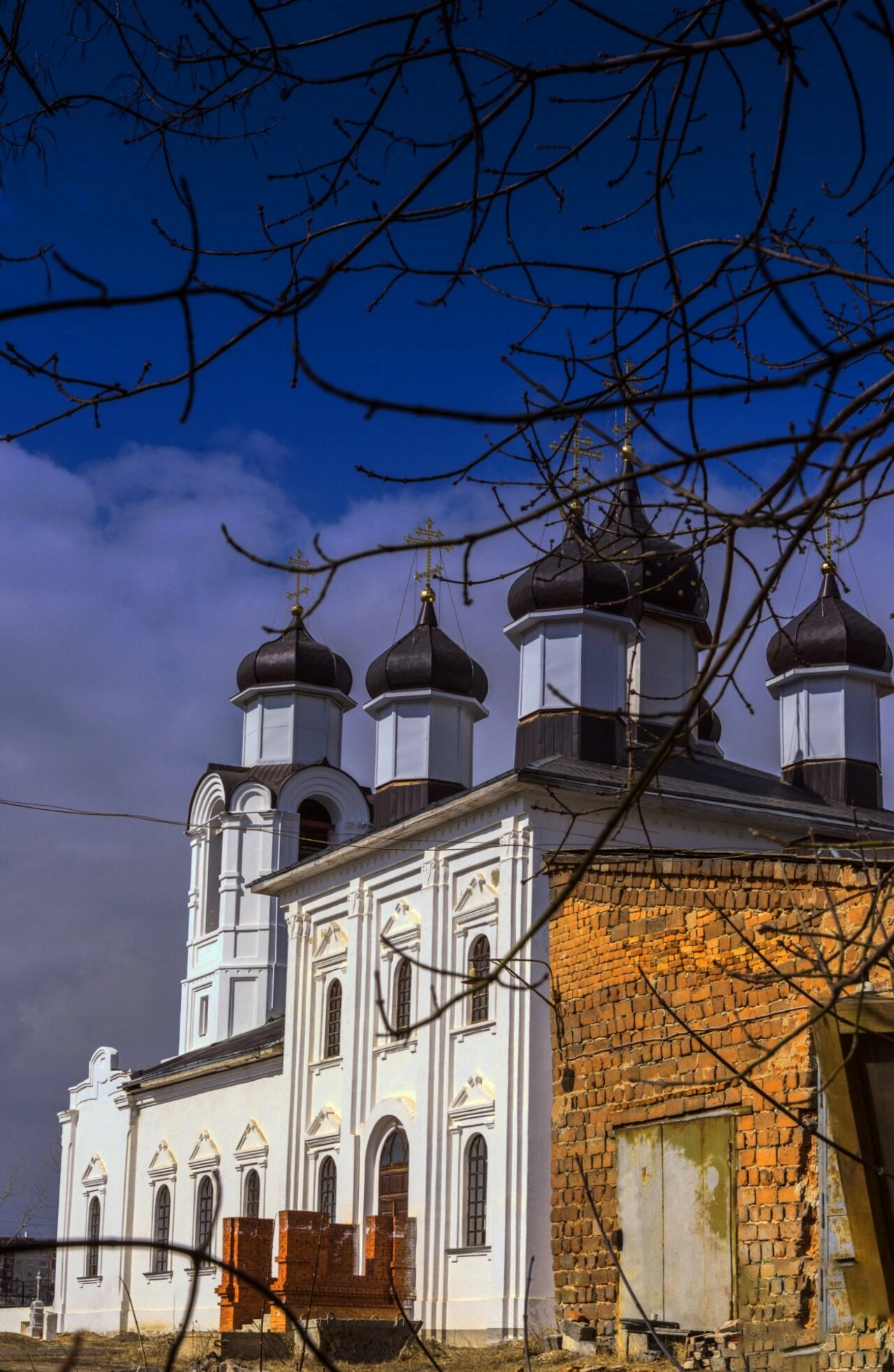 Главной святыней монастыря является соборный храм в честь Преображения Господня, чей благолепный вид и устремлённые в небо купола видны на снимке. Архитектура храма выдержана в традициях русского церковного зодчества, что создаёт ощущение благодатной вечности и духовной крепости. Золотые маковки глав, венчаемые православными крестами, сияют под небом, символизируя победу духа над мирской суетой.