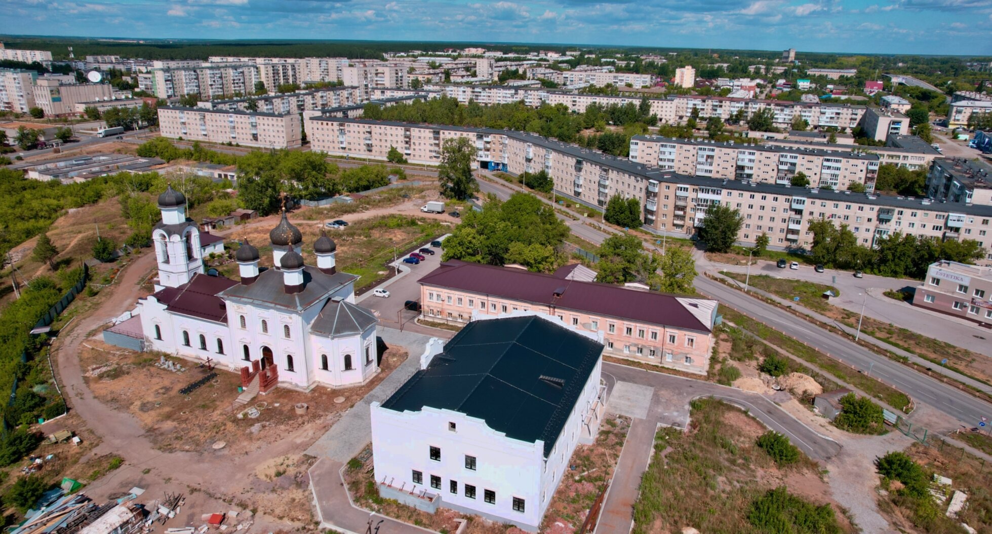 Спасо-Преображенский мужской монастырь в Каменске-Уральском с высоты птичьего полета