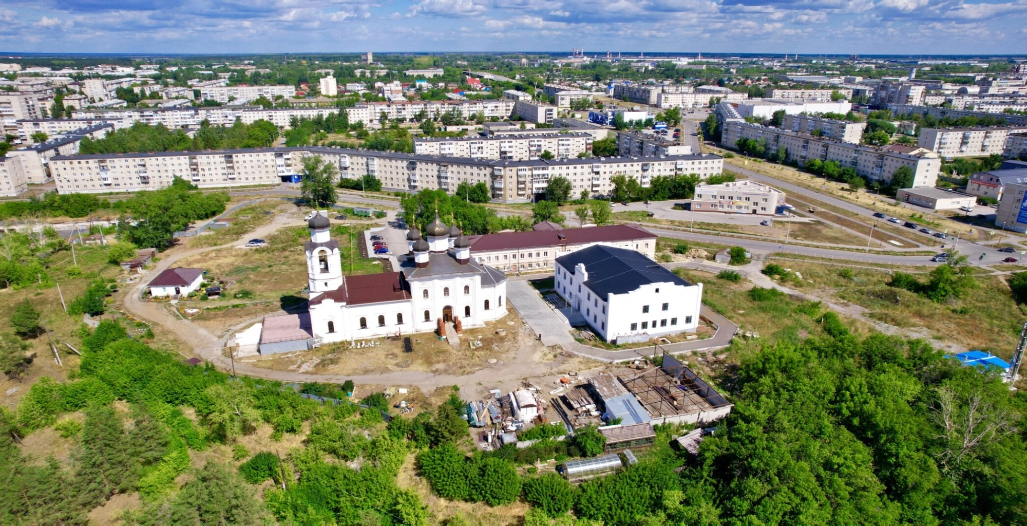 Спасо-Преображенский мужской монастырь в Каменске-Уральском с высоты птичьего полета