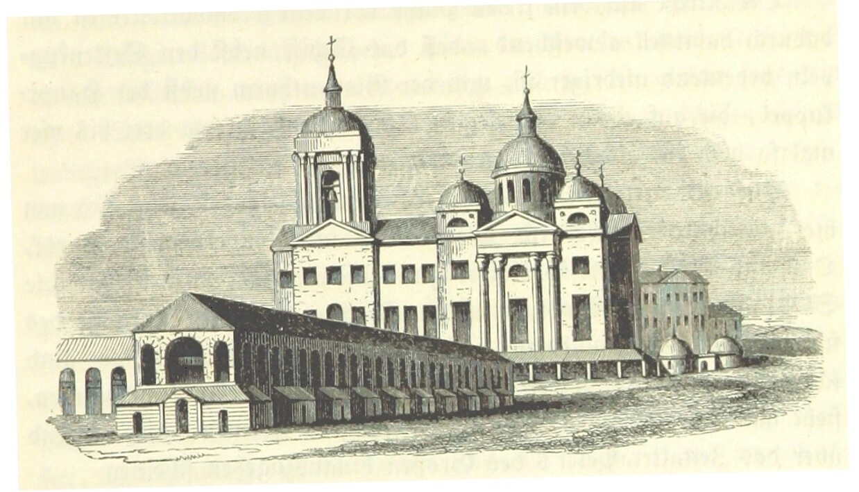 Спасо-Преображенский собор в Белгороде на гравюре 1844 года