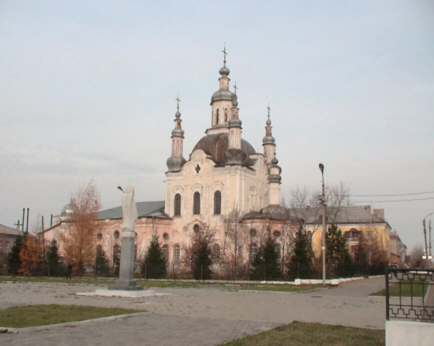 На представленной фотографии запечатлён величественный Спасо-Преображенский собор, расположенный в историческом центре города Шадринска Курганской области. Этот старинный храм, являющийся выдающимся памятником православной архитектуры XVIII столетия, предстаёт во всём своём духовном и культурном величии.