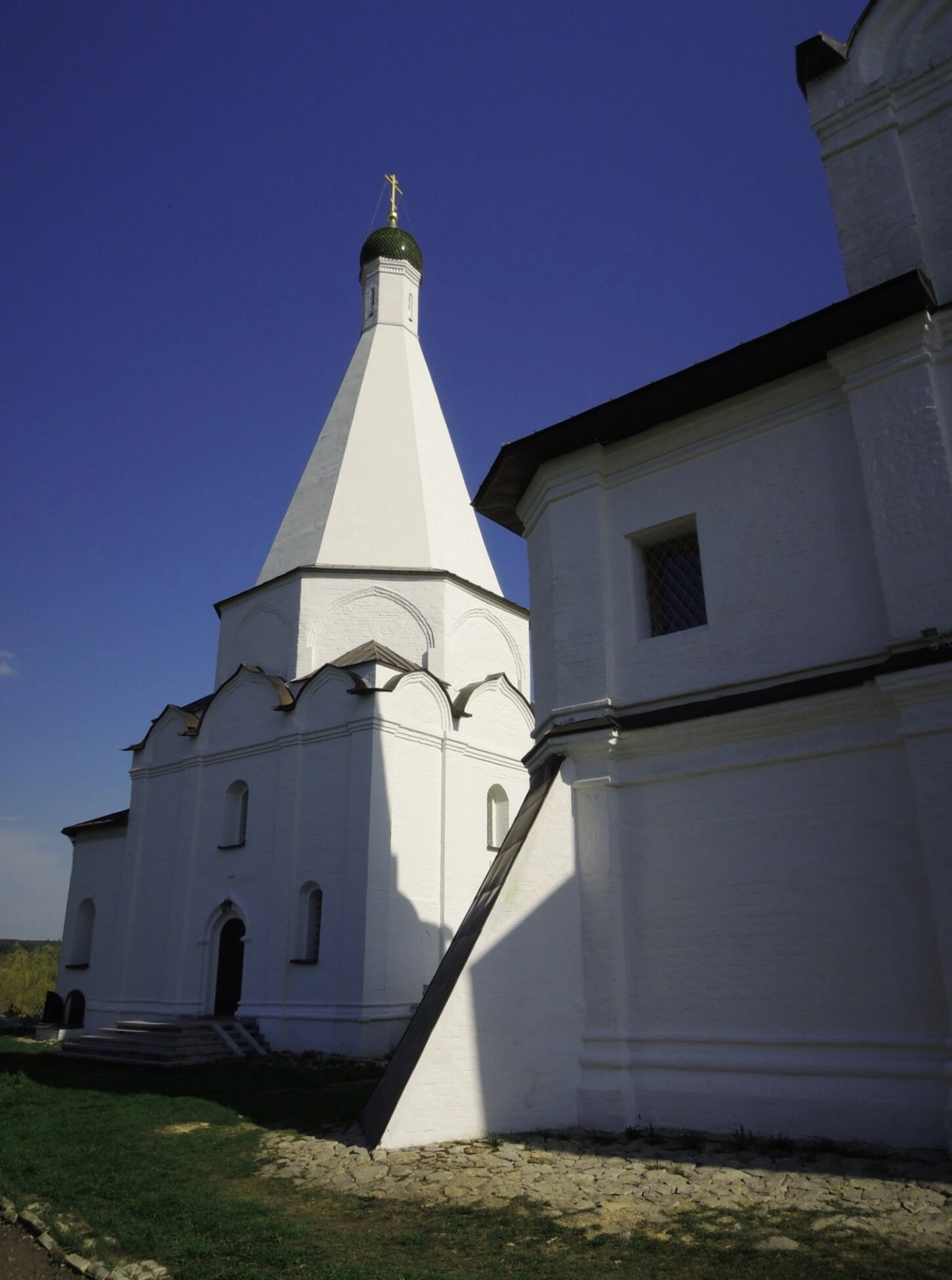Белоснежный каменный собор, увенчанный стройным шатром с золочёным крестом, устремлённым в небеса, воплощает в себе величие духа и силу православной веры. Его архитектурный облик, характерный для периода расцвета шатрового храмового строительства на Руси, создаёт ощущение благодатной тишины и молитвенного сосредоточения. Монастырь был основан на историческом месте, известном как «старое городище», что придаёт ему особое духовное и историческое значение.