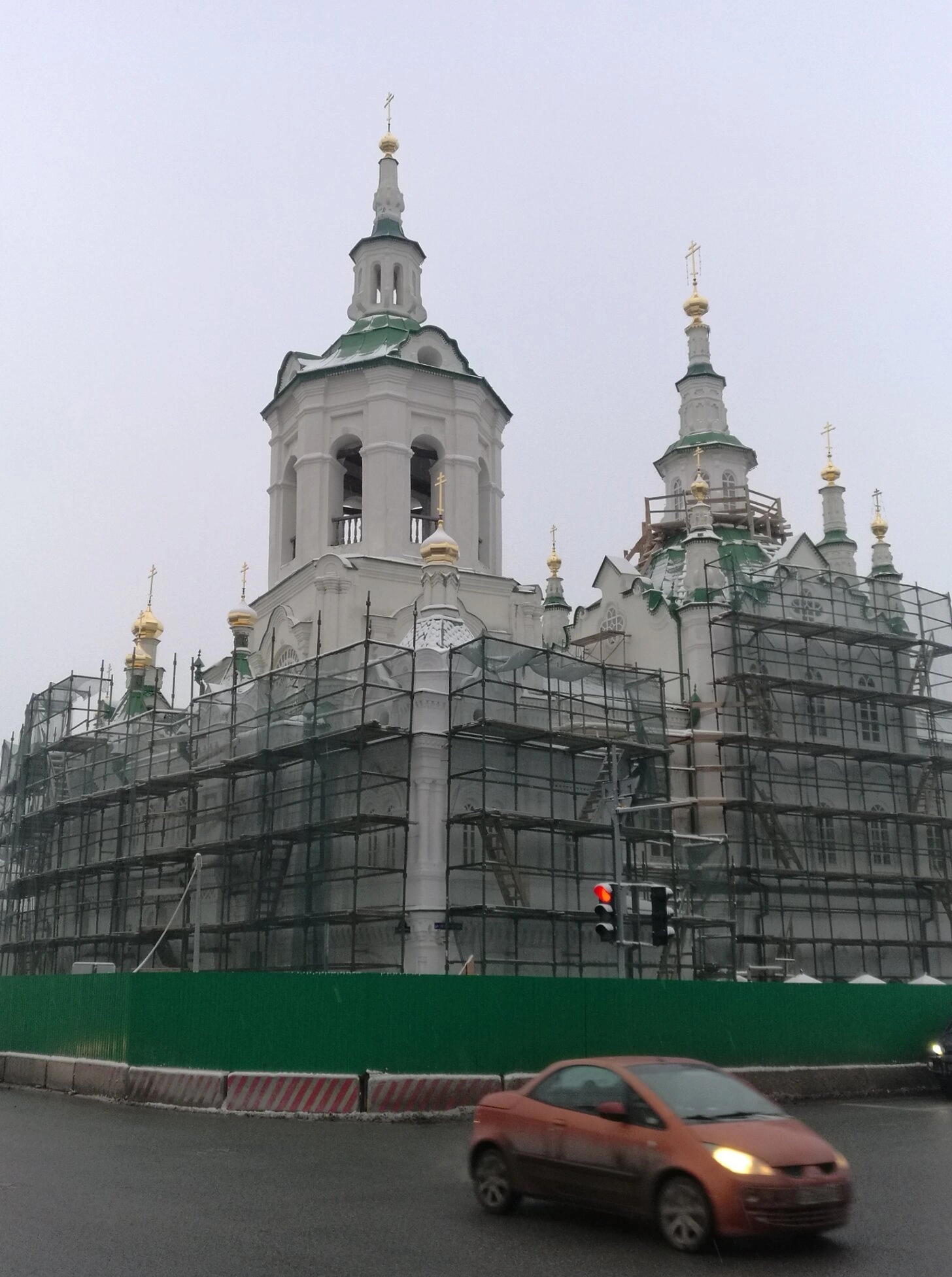 Ныне, возвращённый Тобольской митрополии Русской Православной Церкви, этот величественный собор вновь обретает былое благолепие. Фотография captures именно этот важный момент его возрождения, когда под руками реставраторов постепенно проступают восстановленные фасады и златоглавые купола, устремлённые в небеса.